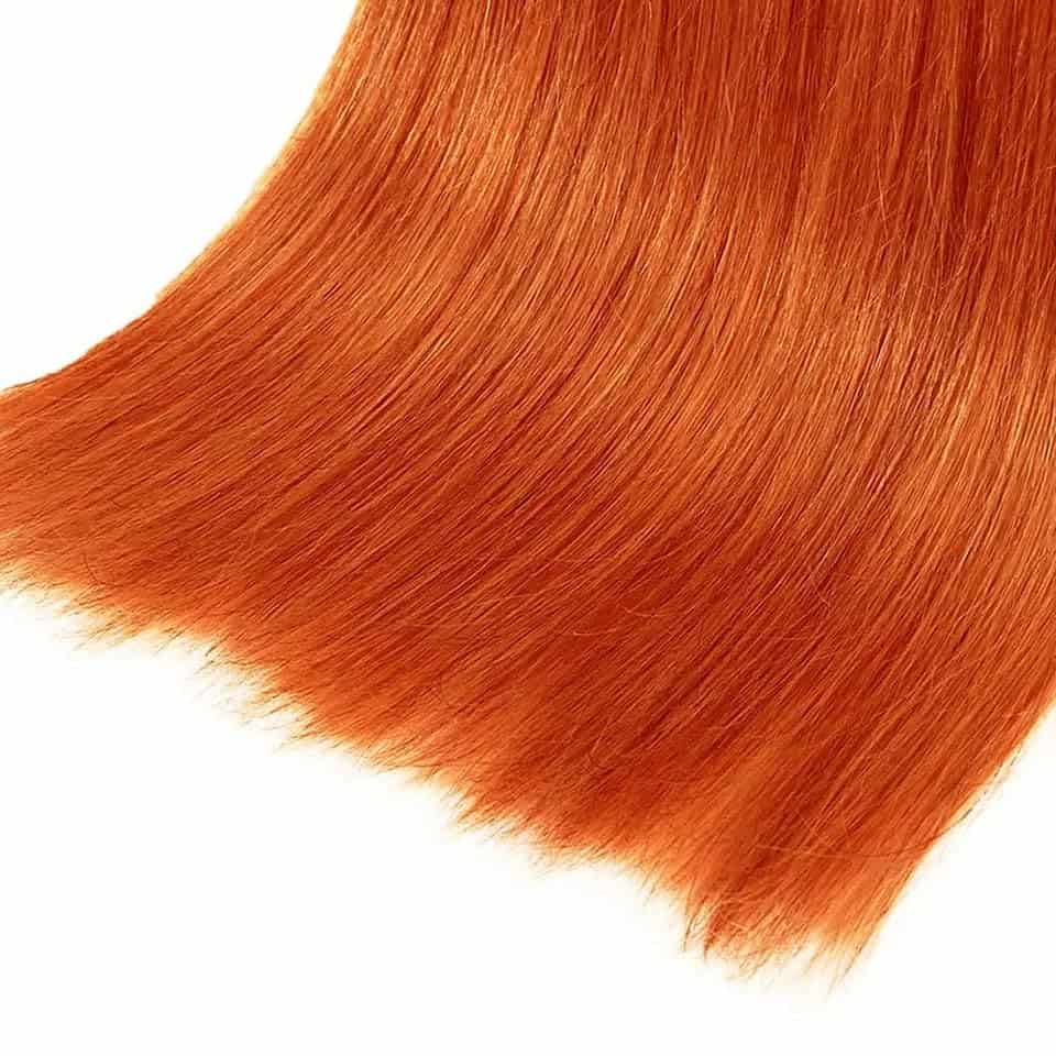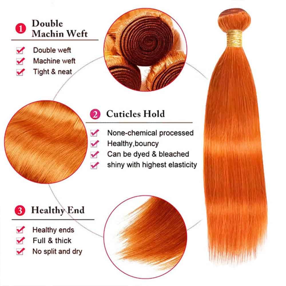 3. Color de los Mechones de Cabello Humano: Color Naranja #350, Mechones de Cabello Recto de Color Naranja Jengibre. Se puede teñir y alisar, rizar, decolorar, resaltar o estilizar como su propio cabello.