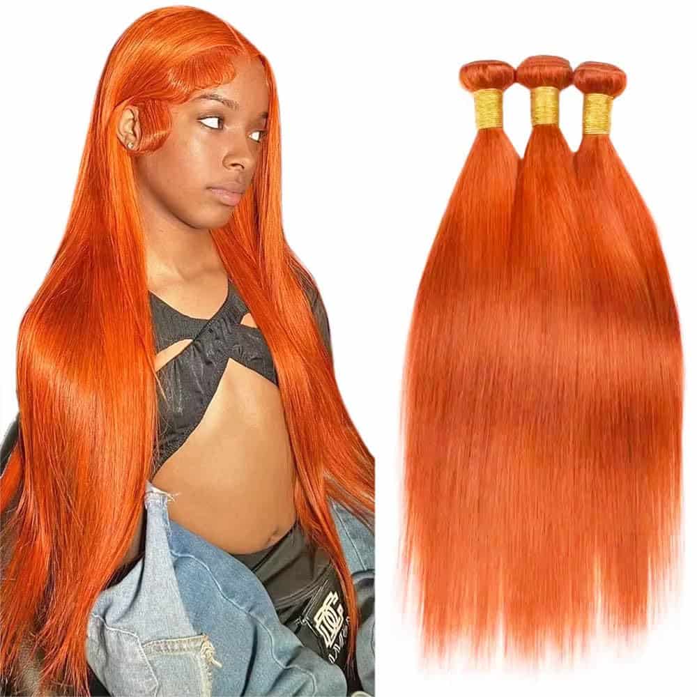 3. Color de los Paquetes de Cabello Humano: Color Naranja 350, Pelo Liso Naranja Ginger. Se Puede Tenir y Alisar, Permanente, Decolorar, Destacar, Rizar o Estilizar Como su Propio Cabello.