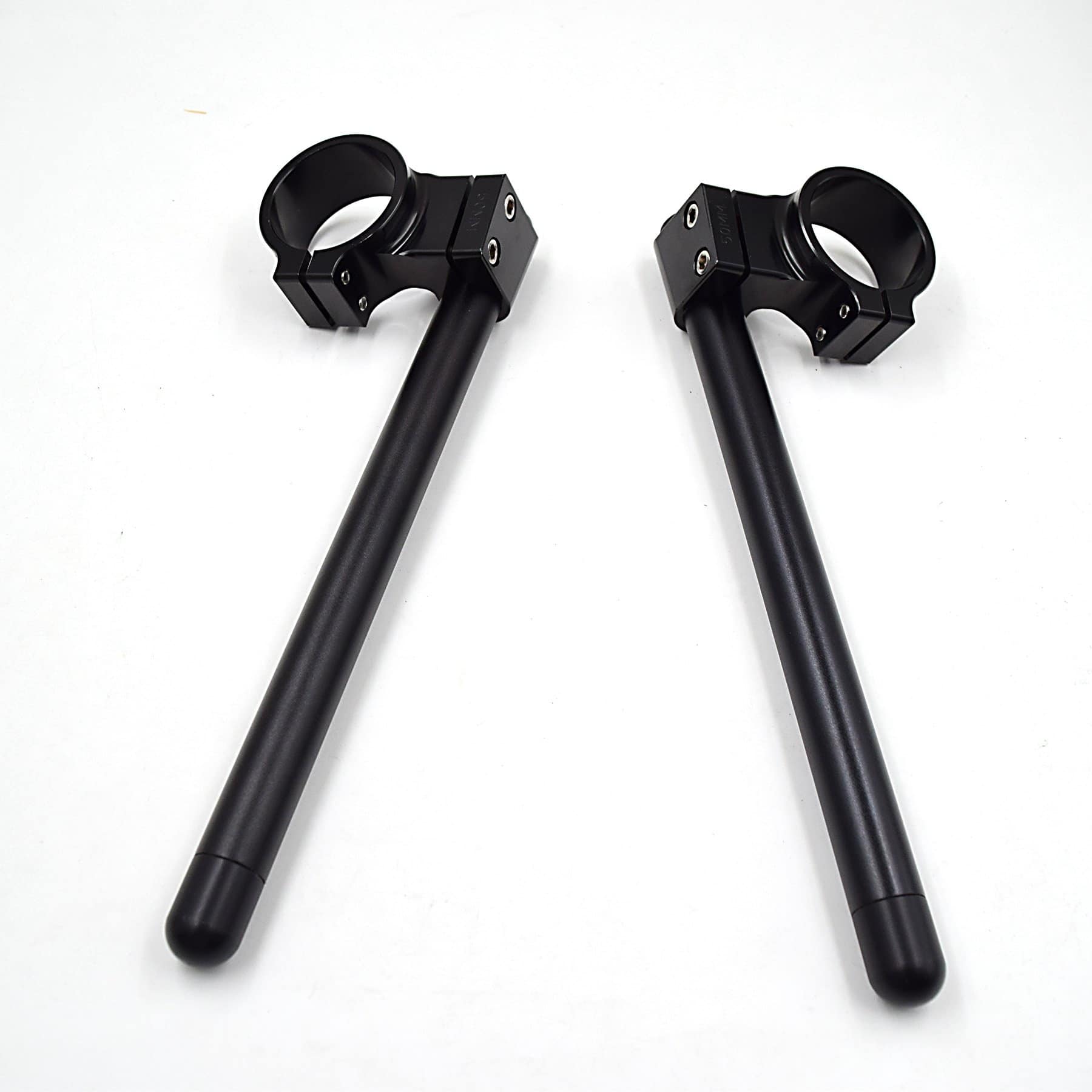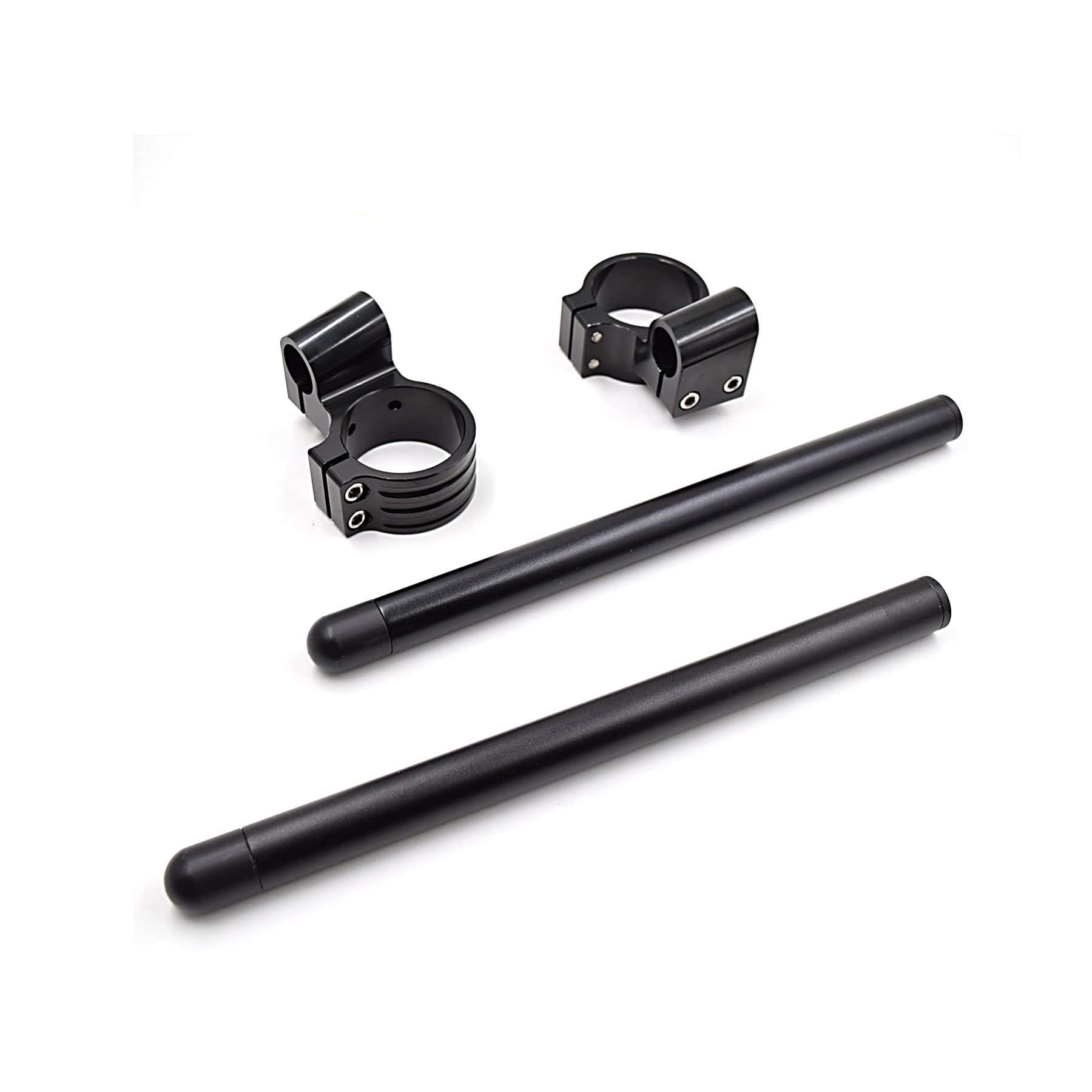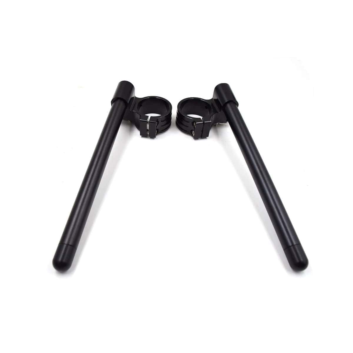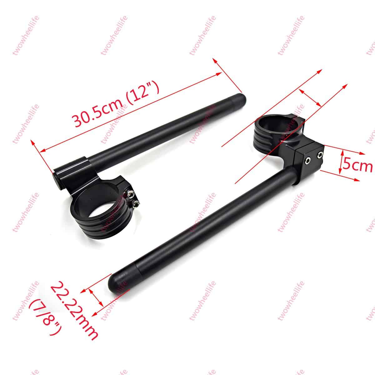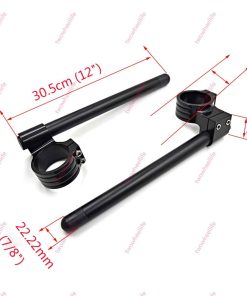 1.Fit on the upper portion of the fork tubes Diameter 36mm. 2.Two-piece clamp design for an easier install and Removable Machined out of 7075-T6 aluminum,Black anodized finish. 3.Bar end with ABS plugs, protect the bars when crash,Good manipulating and stability at high speed. 4.Clamp height:60mm, Tilt 8 Degrees,Bars diameter: approx 22mm(7/8″) ,bars Length: 300mm 12″ length. 5.Sold in pairs,No instructions included.Professional installation is highly recommended.