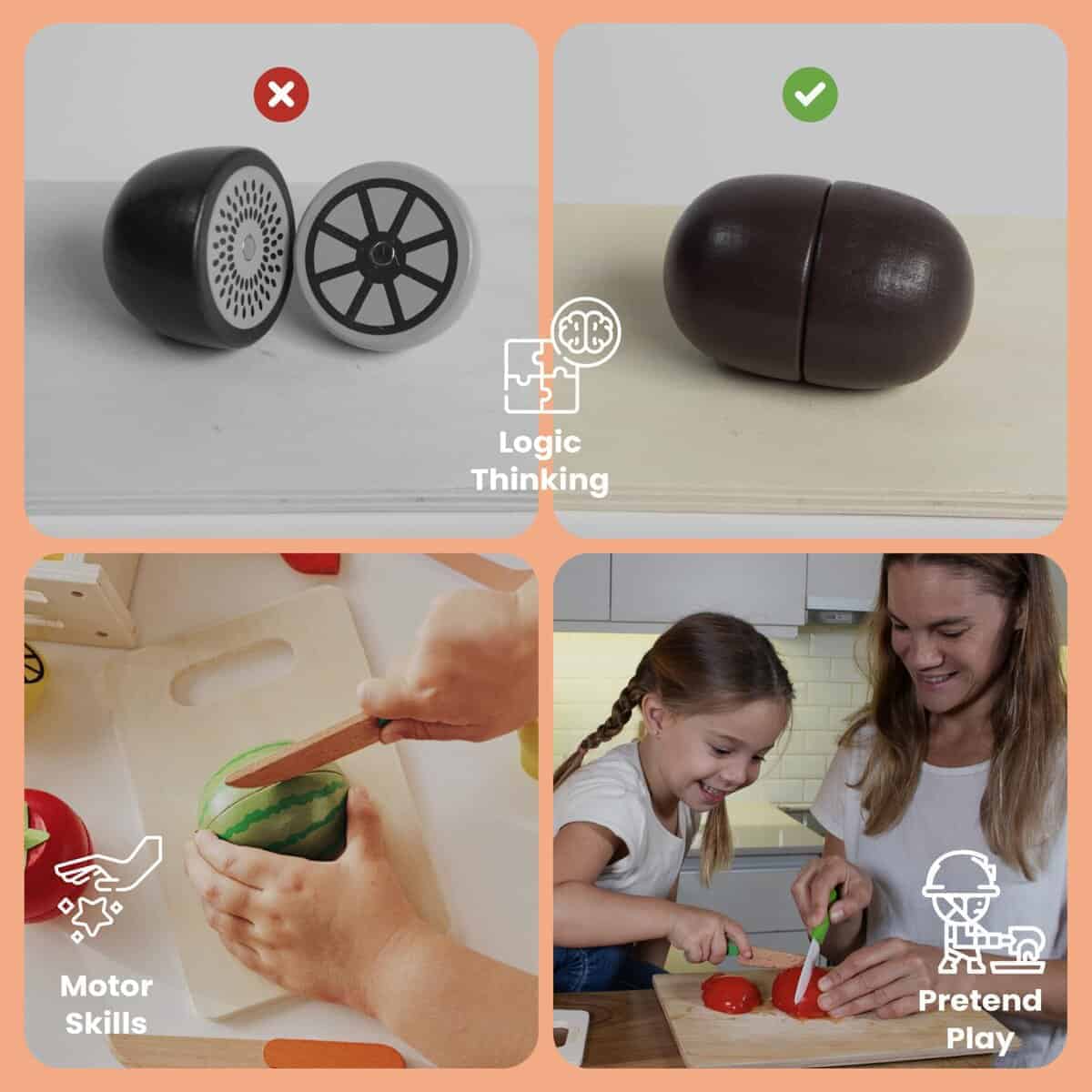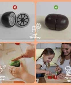 4. ¡COMBO DE APRENDIZAJE Y JUEGO! Los Juguetes de Comida de Madera y Juguetes de Corte de Comida Magnética de Mini Minds convierten el aprendizaje en diversión. La configuración de cocina Montessori aumenta la concentración y estimula las habilidades matemáticas a través de un juego divertido. Juguetes de corte de comida de madera perfectos para niños pequeños que fomentan el juego imaginativo, e ideal comida de juguete para niños de 4-8 años que quieren explorar su creatividad culinaria.