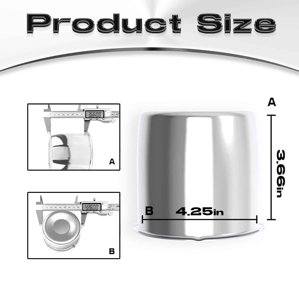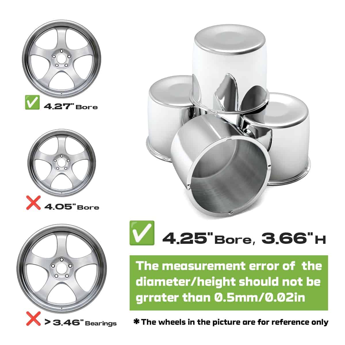 3. : Estos tapacubos de centro de 4.25 pulgadas crean un punto focal especial en tus llantas, haciendo que tu auto se destaque entre la multitud.
