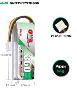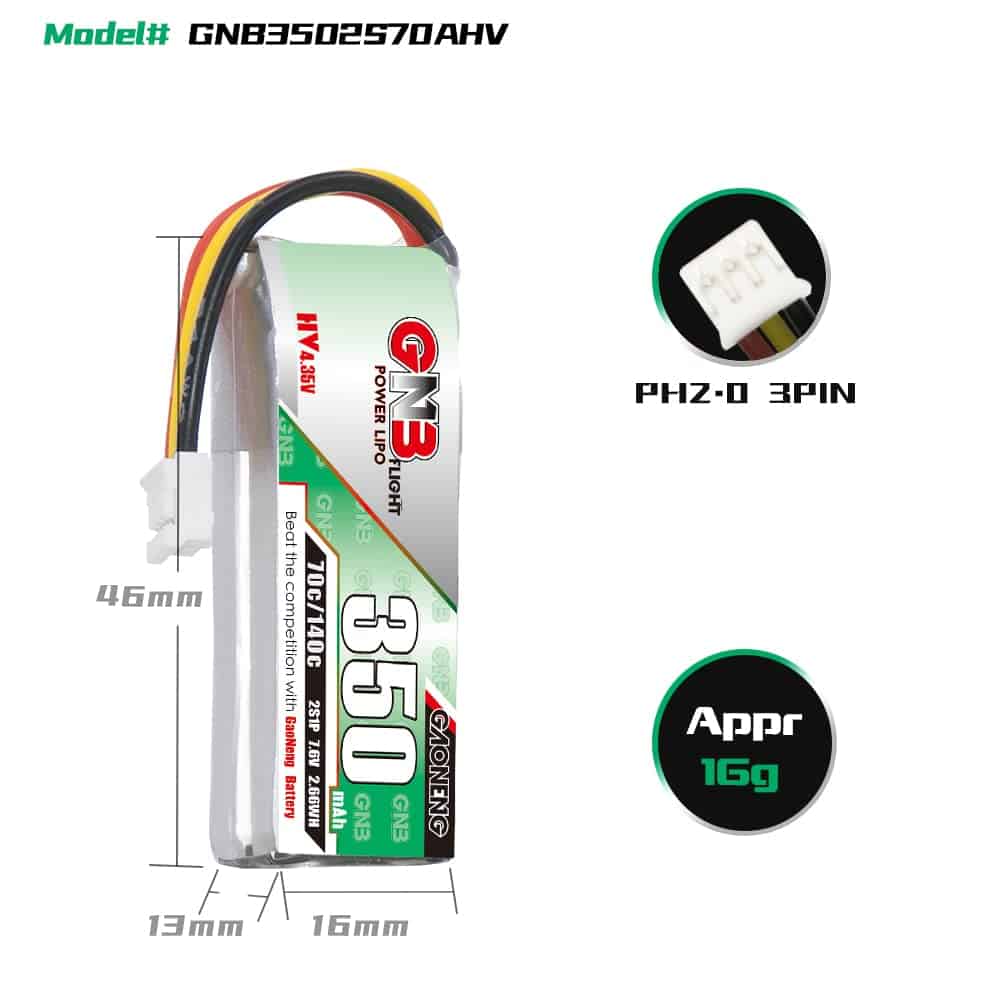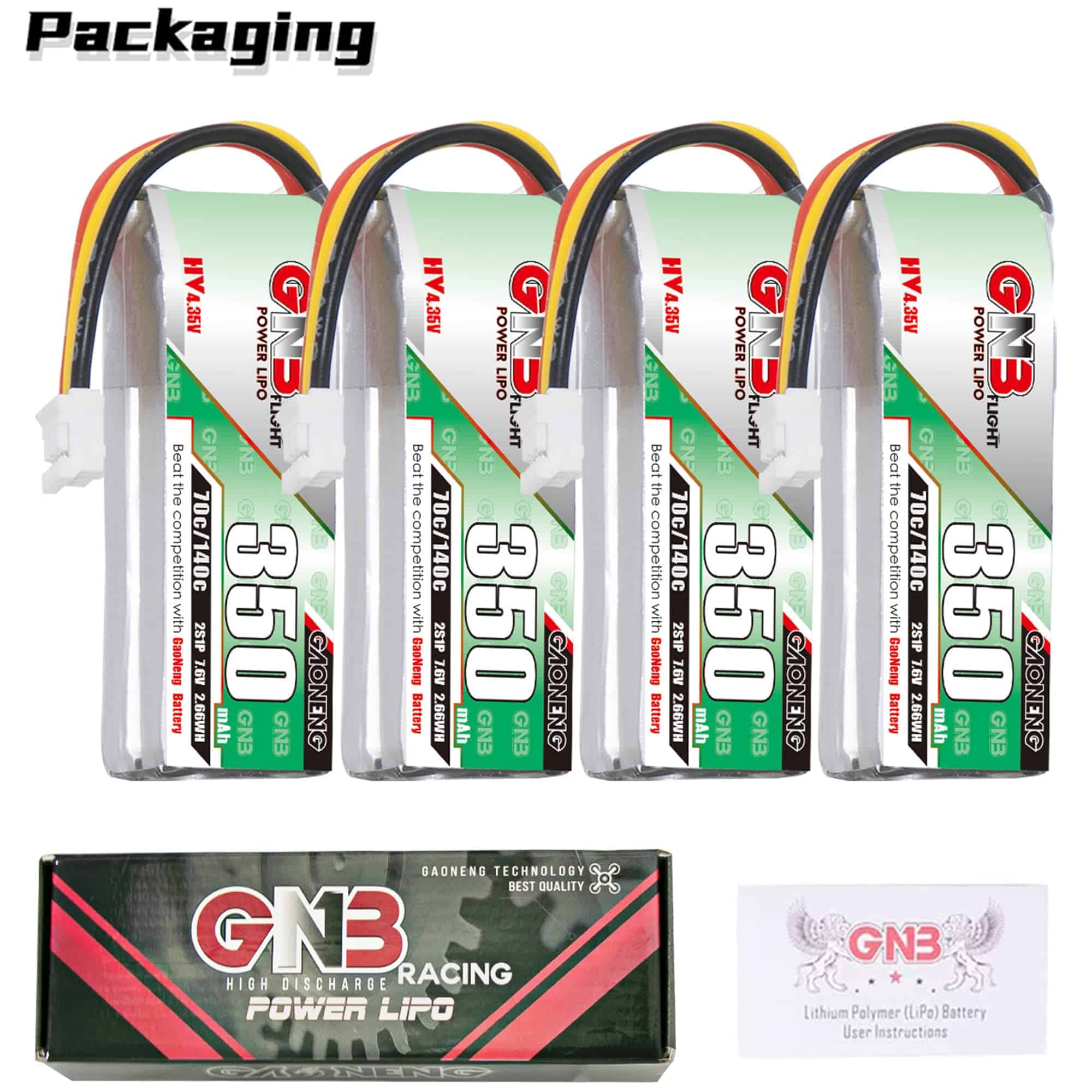 4 Baterías GNB de GAONENG 2S LiPo 350mAh HV 7.6V 70C PH2.0