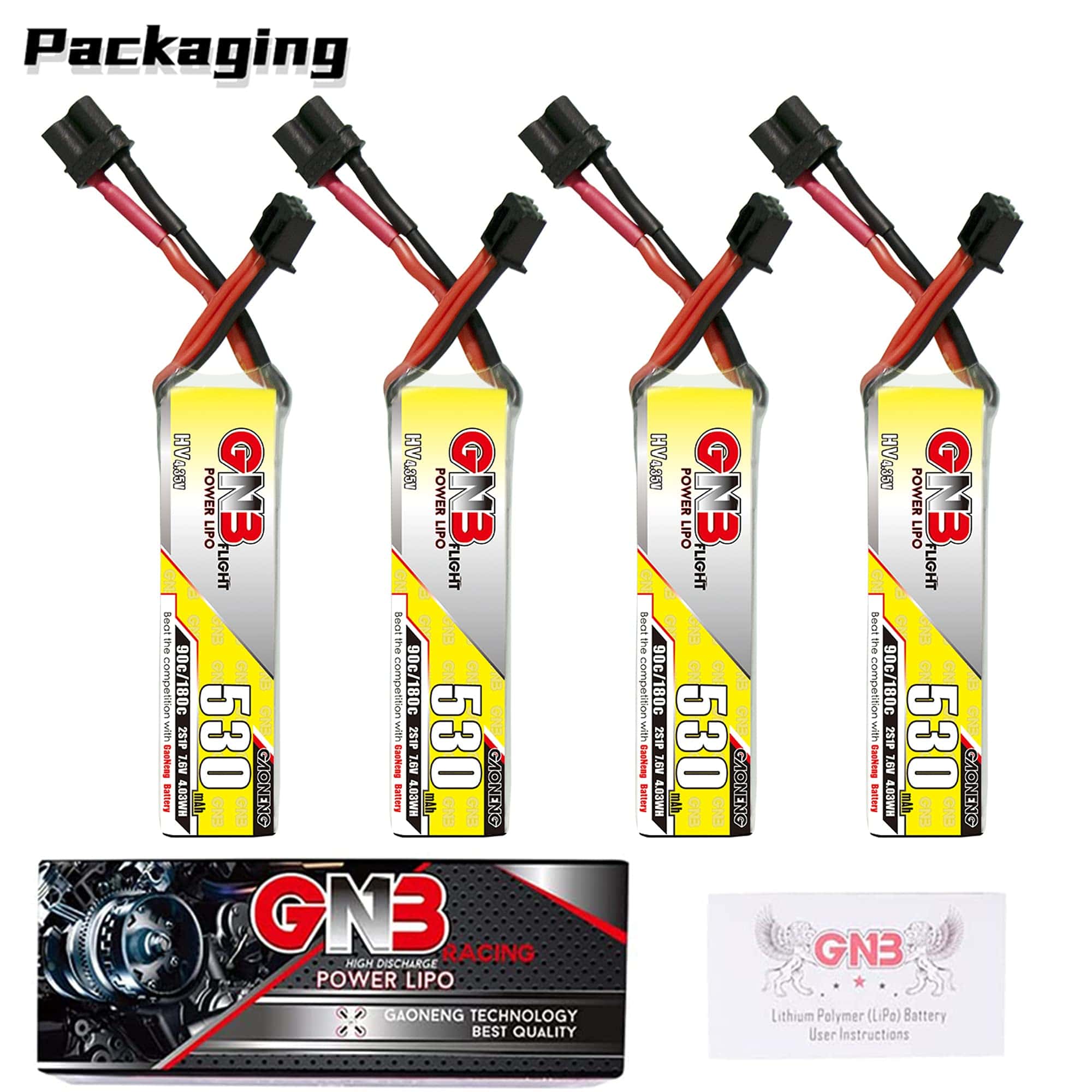 4 Baterías LiPo GAONENG GNB 530mAh 2S 7.6V 90C HV con