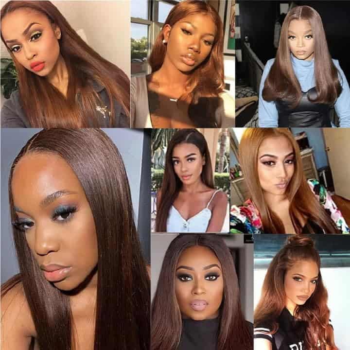 3. Color de las Extensiones de Cabello Humano: 4 Paquetes de Cabello Liso Chocolate.