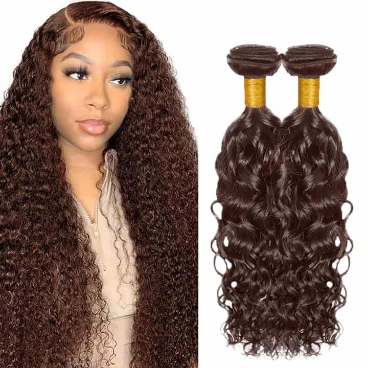 #4 Brown Bundles Cabello Humano Ondulado en Agua 28 30