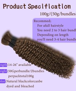 Cabello para trenzar humano de alta calidad que se destaca por su excelente material y técnicas rizadas únicas. Disponible en longitudes de 14 a 26 pulgadas, ofreciendo diversas opciones para satisfacer tus necesidades. Cada paquete contiene dos piezas con un total de 110g. Recomendamos usualmente comprar dos packs, pero también puedes probar con uno primero. Ofrecemos una variedad de colores: Natural, 4, marrón 350 y P4/27 para resaltar tu belleza diversa. El cabello a granel para trenzar es una alternativa natural y resistente, ideal para trenzas bohemias, trenzas sin nudos, trenzas en caja, trenzas africanas, twists y más. La técnica rizada única permite mantener las ondas durante más tiempo, brindando un aspecto natural y versátil. FeFey Cabello para Trenzar Humano se compromete a ofrecer productos de alta calidad y un excelente servicio postventa. Contáctanos en caso de dudas, ¡tu experiencia de compra será excelente!