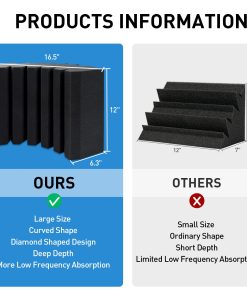1. Nuestras trampas de graves tienen una densidad actualizada de 25 kg/m3 para ayudar a eliminar los sonidos de baja frecuencia creados por los altavoces al hacer podcasting, practicar un instrumento musical, ver películas o crear música para mejorar la pureza del sonido.
