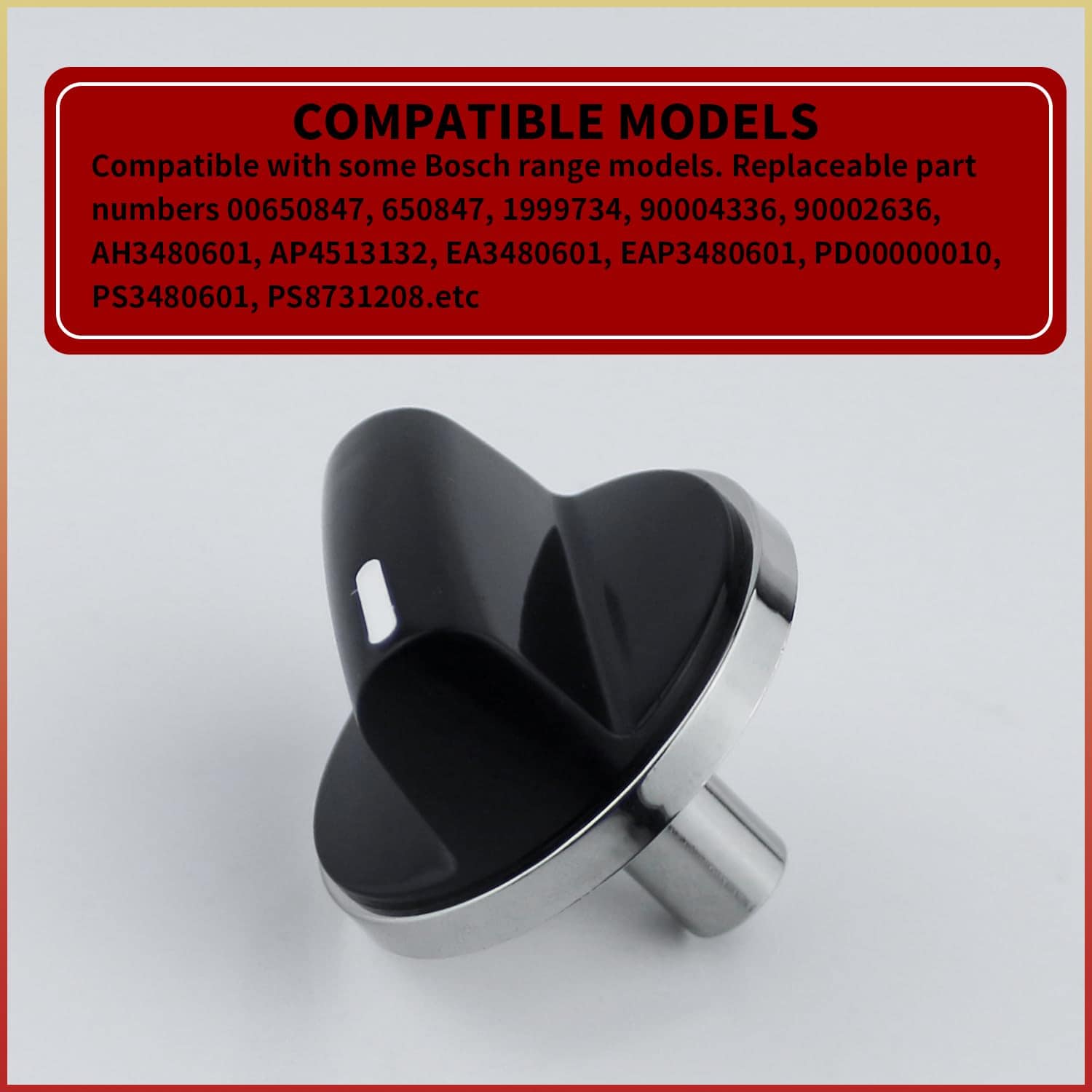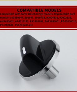 Perillas para Cocina 00650847, Perillas de Control de Estufa Repuesto Compatible con Estufa Bosch Cantidad – 4 Perillas COMPATIBLE CON – Compatible con algunos modelos de estufas Bosch. Números de parte reemplazables 00650847, 650847, 1999734, 90004336, 90002636, AH3480601, AP4513132, EA3480601, EAP3480601, PD00000010, PS3480601, PS8731208, etc. Compatible con modelos de estufas Bosch: NGM3054UC NGM3054UC-01 NGM3654UC NGM3654UC-01 NGM5054UC NGM5064UC NGM5654UC NGM5664UC. FÁCIL DE INSTALAR – Simplemente desenchufe la perilla vieja y reemplácela por una nueva. Eje en forma de ‘D’. Nota: Los nombres de marca anteriores y cualquier nombre de modelo asociado se utilizan solo para demostrar compatibilidad. Se recomienda confirmar el modelo del producto que necesita antes de comprar, y comparar si el producto en la imagen es igual que su producto, para no perder su tiempo.