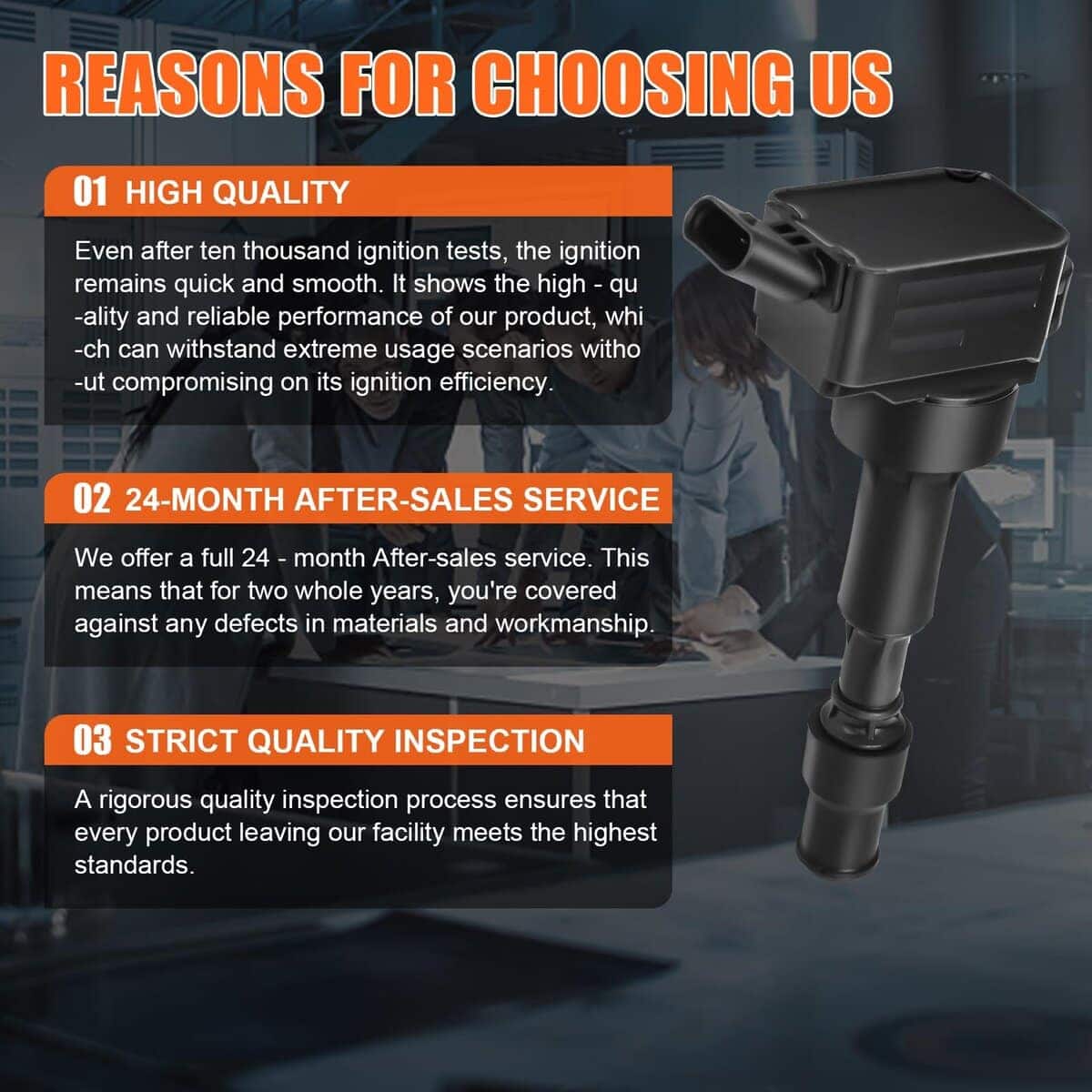 4. Durabilidad de Grado Militar: Nuestra bobina de encendido se beneficia de un sistema de protección de tres capas. Cuenta con encapsulación de epoxy con una clasificación de resistencia al agua IP67, un núcleo de acero de silicio que ofrece una mejora del 40% en resistencia a la vibración y una carcasa de aleación de cobre-níquel que proporciona una eficiencia de disipación de calor un 35% mejor. Como resultado, nuestra bobina de encendido es más duradera que la que viene de fábrica originalmente.