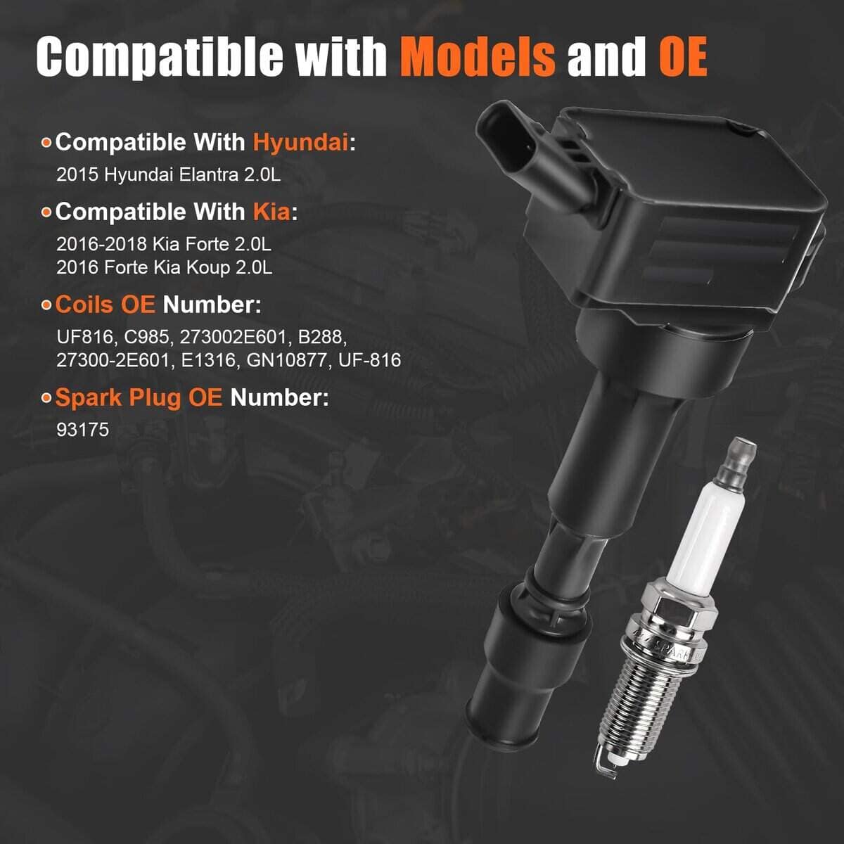 1. Modelos de Vehículos Compatibles: Bobina de encendido para modelos Hyundai: Elantra. Para modelos Kia: Forte | Forte Koup. Para modelos Mercury: Sable. Para modelos aplicables detallados, consulte la página y la imagen principal. El pack de bobinas reemplaza UF816, C985, 273002E601, B288, 27300-2E601, E1316, GN10877, UF-816.