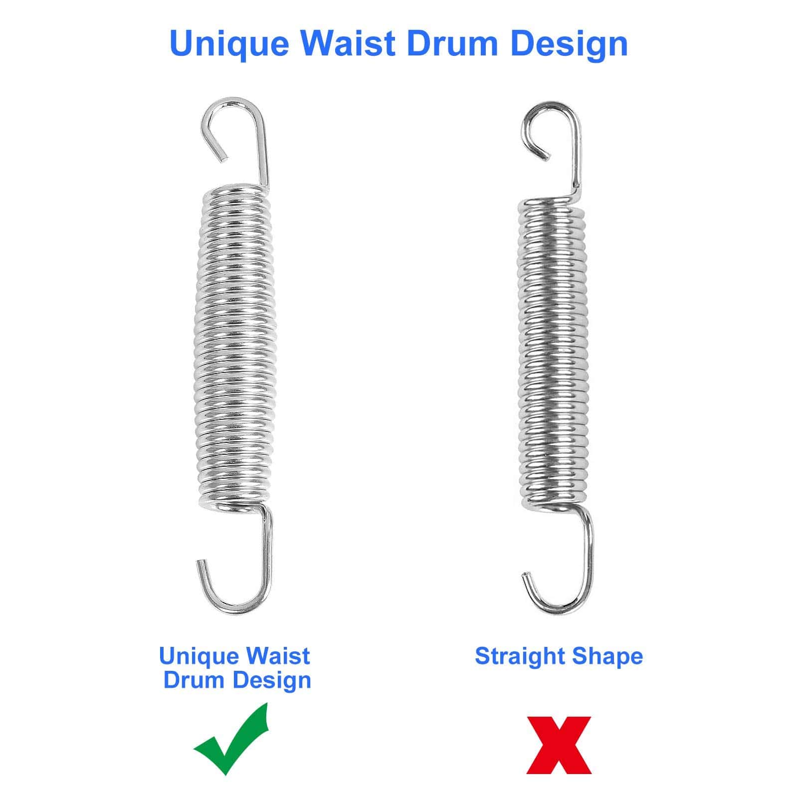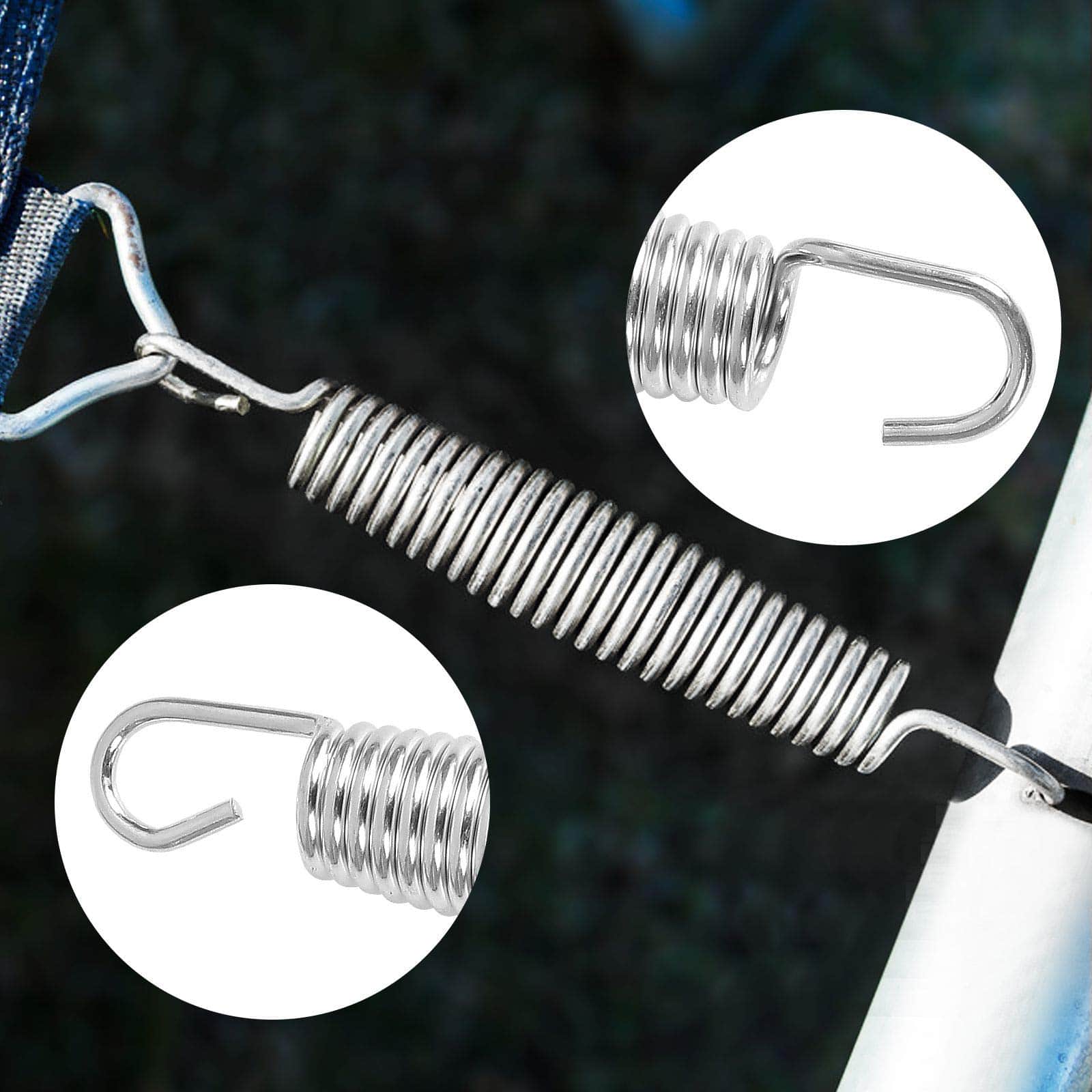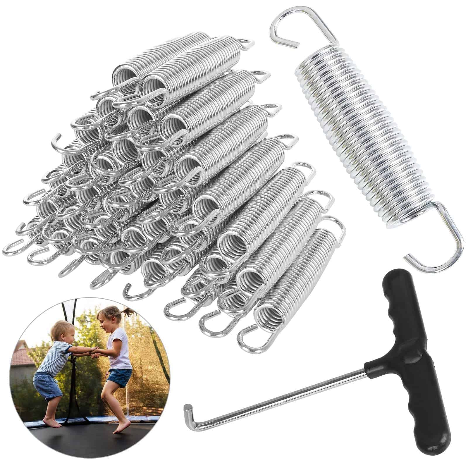 40Pcs 5-1/2� Resortes de Reemplazo para Trampolín son la solución perfecta para reemplazar los resortes dañados o desgastados de su trampolín. Hechos de acero inoxidable de alta calidad, estos resortes garantizan calidad y longevidad, resistencia al óxido y a la corrosión, resistencia a la intemperie y a la rotura. Con una longitud de 5.5 pulgadas y un diámetro de alambre de 3 mm, estos resortes están diseñados con forma de tambor en la cintura para una excelente elasticidad y una fuerte capacidad de estiramiento. Los extremos curvados de los ganchos proporcionan una sujeción superior, asegurando un rebote seguro y divertido. Además, estos resortes de reemplazo son fáciles de instalar con el gancho de ajuste duradero incluido en el paquete. Ya sea para trampolines, columpios, invernaderos, aros de baloncesto, cobertizos o cualquier otra aplicación, ¡estos resortes son la elección perfecta para una mejor experiencia de rebote!