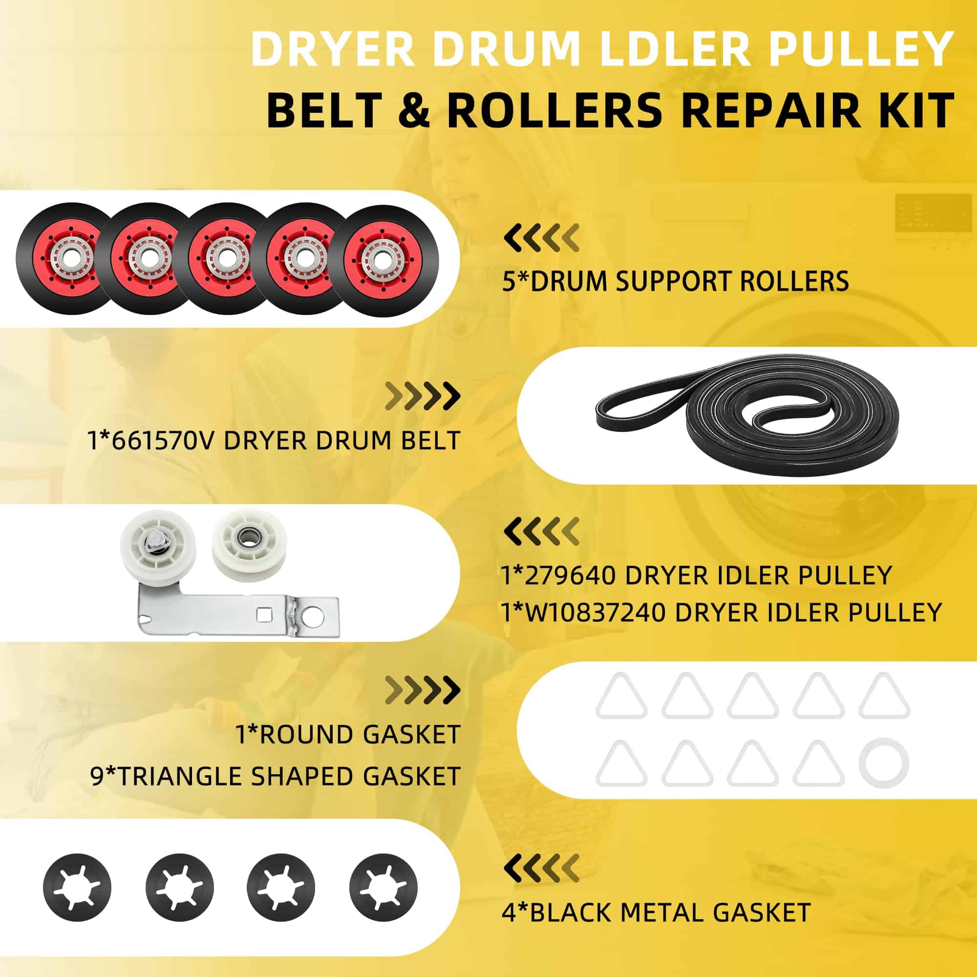 El kit de reparación 4392067 para secadora incluye todas las piezas desgastadas necesarias para mantener tu secadora en óptimas condiciones. Compatible con varias marcas y modelos, este kit es de alta calidad y ha sido rigurosamente probado para cumplir con los estándares de rendimiento y ajuste originales. Incluye instrucciones detalladas para una fácil instalación que te permitirá realizar la reparación tú mismo en una o dos horas. Si tienes alguna pregunta o problema con el kit, contáctanos para obtener un reemplazo o compensación.