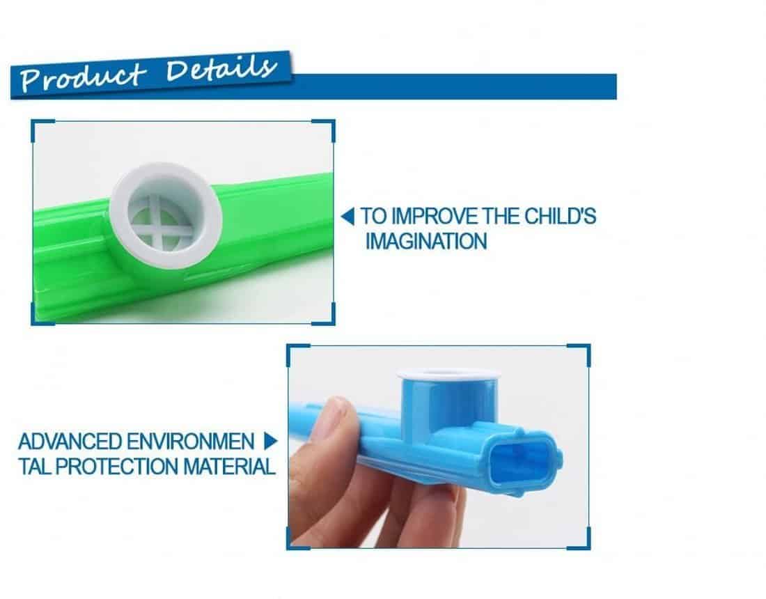 Al tocar el KAZOO, toma la parte grande en la boca, con tu voz para tocar las melodías, las vibraciones vocales pueden impulsar la vibración del KAZOO.