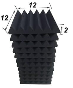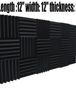 Producido con espuma de poliuretano respetuosa con el medio ambiente para mejorar las características acústicas sin dañar al cuerpo humano. Especificaciones: Material: Espuma de poliuretano Color: Negro Tamaño: 30x30cm (12×12″) Grosor: 5cm / 2″. Características: – Adecuado para estudios de grabación, salas de escucha, cine en casa, KTV y todo tipo de lugares públicos. – La esponja es el material ideal para aislamiento acústico, absorción de sonido e aislamiento térmico. – La esponja absorbente de sonido está procesada para aumentar la absorción y reflexión del sonido en su interior para lograr el efecto de aislamiento acústico y absorción de sonido. Incluye: 48 paneles negros.