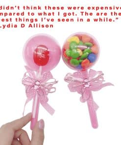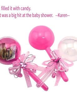 CONTENIDO: 48 piezas de sonajero rellenable ROSA. 1 lazo de cinta, 1 cristal de oso, 2 chupetes miniatura por sonajero. TAMAÑO: 6 pulgadas de longitud X 2.25 pulgadas de ancho. USO: Llene con sus golosinas favoritas para usar como favores de fiesta en su día especial o cree decoraciones de fiesta DIY para centros de mesa. Viene en color rosa o azul, ¡perfecto para baby showers y revelaciones de género! 100% SATISFACCIÓN GARANTIZADA: En JC Hummingbird, la satisfacción del cliente es nuestra principal prioridad. Queremos asegurarnos de que esté completamente satisfecho con su compra. Si por alguna razón no está satisfecho, puede devolverlo dentro de los 30 días posteriores a la recepción del envío para obtener un reembolso. ¡Promovemos experiencias de compra fáciles y placenteras!