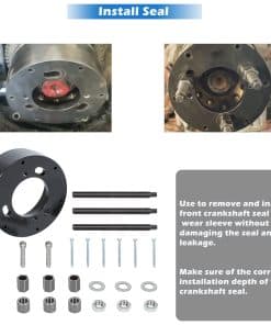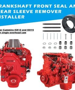 Compatible con Cummins ISX12 e ISX15 con árbol de levas de un solo cabezal. Reemplaza directamente los números de parte 4918991. Utilizado para quitar e instalar el sello frontal del cigüeñal y la manga de desgaste sin dañar el sello. Incluye: 1 Removedor de Manga, 3 Arandelas, 3 Tuercas (Cortas), 3 Tuercas (Largas), 3 Pernos, 3 Tornillos Forzados, 2 Tornillos Hexagonales, 6 Tornillos Autorroscantes.