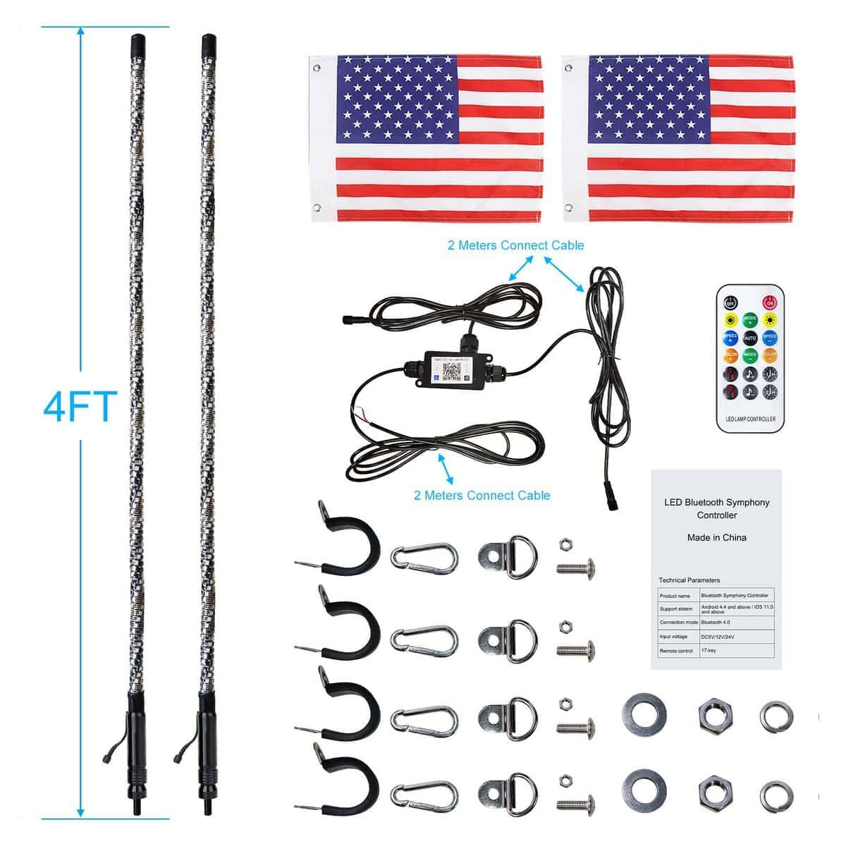 4FT-2PC Luces de látigo LED para UTV RGB Chasing/Dancing