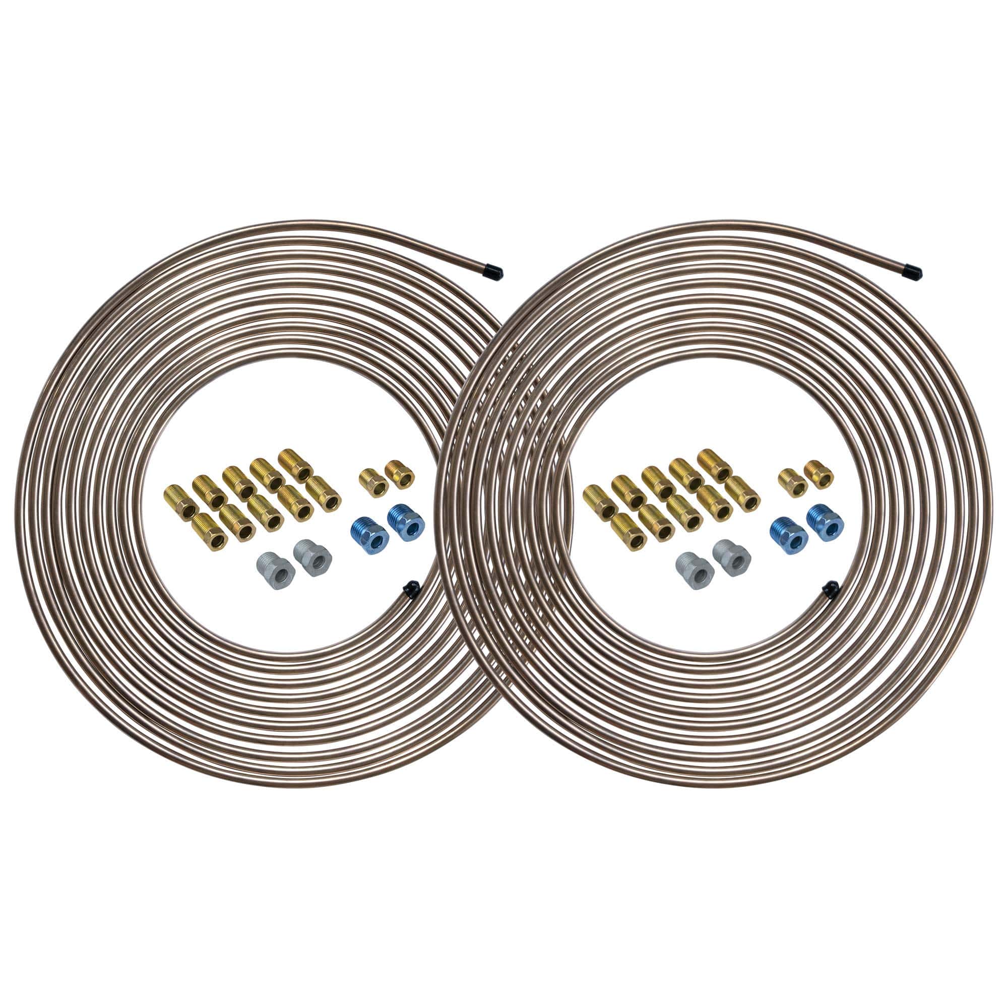 El kit de tubos de freno de aleación de cobre-níquel de 1/4 pulgadas x 25 pies, ofrecido en un juego de dos, proporciona a su vehículo una protección superior del sistema de frenos. Estos tubos de freno son más duraderos que los tubos estándar de acero inoxidable, cumpliendo plenamente con las especificaciones SAE e ISO. Nuestros tubos de cobre-níquel están especialmente tratados para la resistencia a la corrosión, garantizando una mayor durabilidad incluso en condiciones adversas. Esto los hace ideales tanto para aplicaciones de frenos traseros como de frenos delanteros, ofreciendo 100% de resistencia a la oxidación y a la corrosión. La instalación es sencilla con herramientas de expansión y cortadores estándar. El rollo de tubo de freno de 1/4 pulgadas permite un fácil doblado y expansión, soportando tanto expansores simples como dobles sin el riesgo de doblarse o romperse, gracias a su espesor de pared de 0.028 pulgadas. El tubo de cobre de 1/4 pulgadas es altamente versátil, adecuado para la mayoría de los tipos de vehículos y sistemas de frenos, incluidas las aplicaciones del cilindro maestro de frenos y la manguera de freno. Su construcción de aleación de cobre-níquel garantiza un rendimiento fiable en todas las condiciones climáticas. Estos kits de tubo de freno de cobre y níquel de 1/4 pulgadas x 25 pies de 4LifetimeLines no solo son asequibles y prácticamente a prueba de óxido, sino que también cuentan con la garantía de por vida de 4LifetimeLines, asegurando fiabilidad y satisfacción a largo plazo.