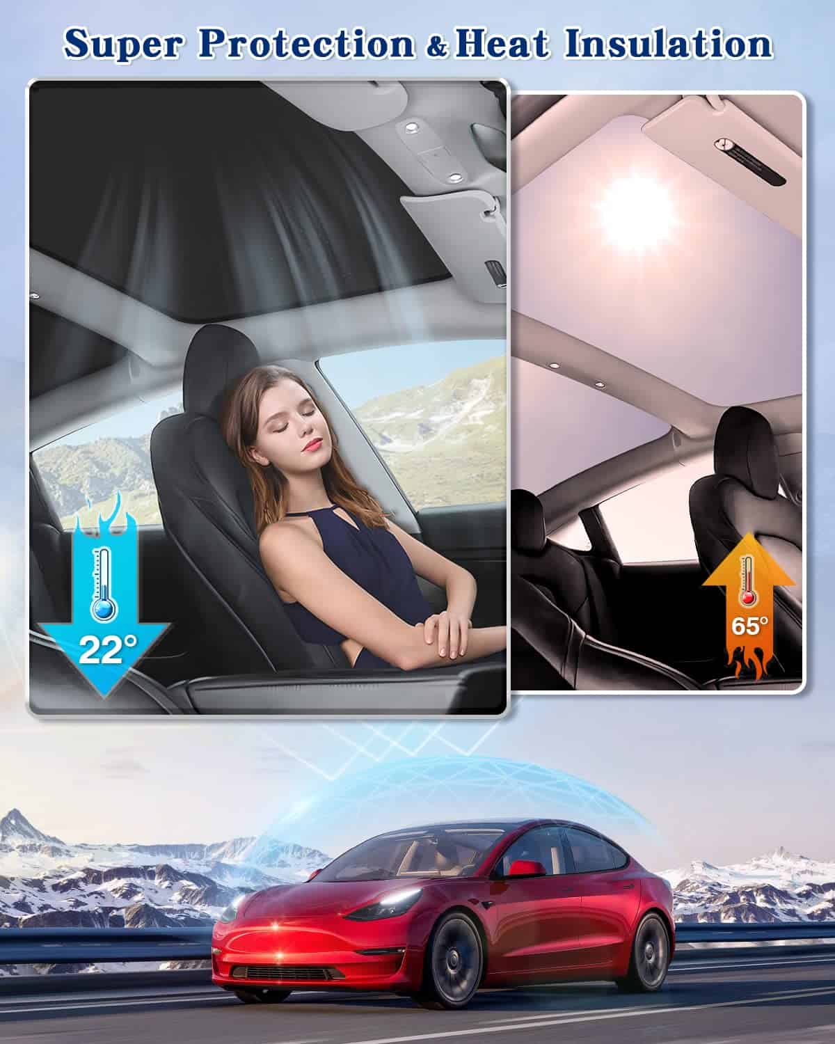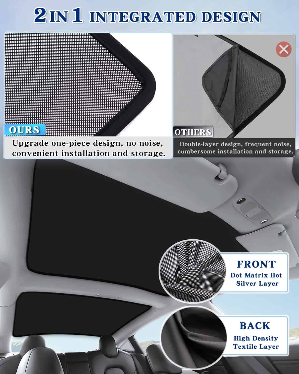 4PC Tesla Model 3 Roof Sunshades, 2 en 1 Parabrisas de
