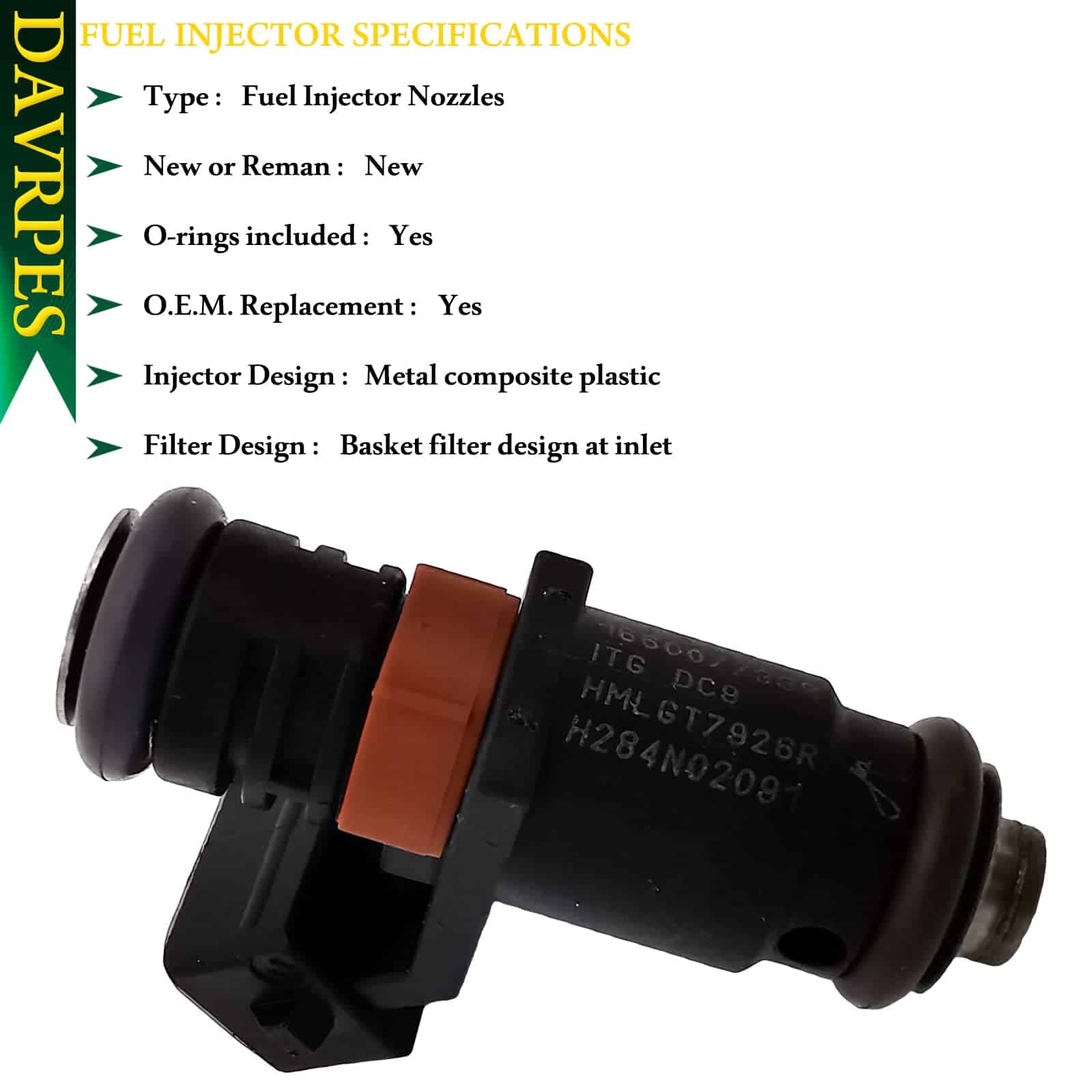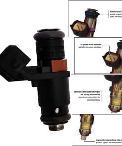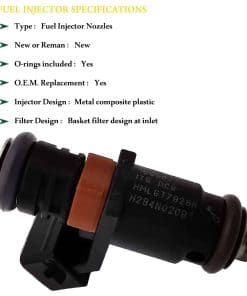2. Calidad comparable a OEM: Tipo de orificio: Disco con 6 orificios, 2 pines, incluye anillos en O, tipo de combustible: gasolina, diseño del inyector: plástico compuesto de metal, diseño del filtro: diseño de filtro de cesta en la entrada.