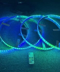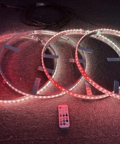 Paquete incluido: 4 luces de anillo de rueda, caja de control bluetooth multifuncional con cableado de 5 metros, control remoto (sin batería), interruptor con dispositivo de seguridad, tornillos y accesorios necesarios.