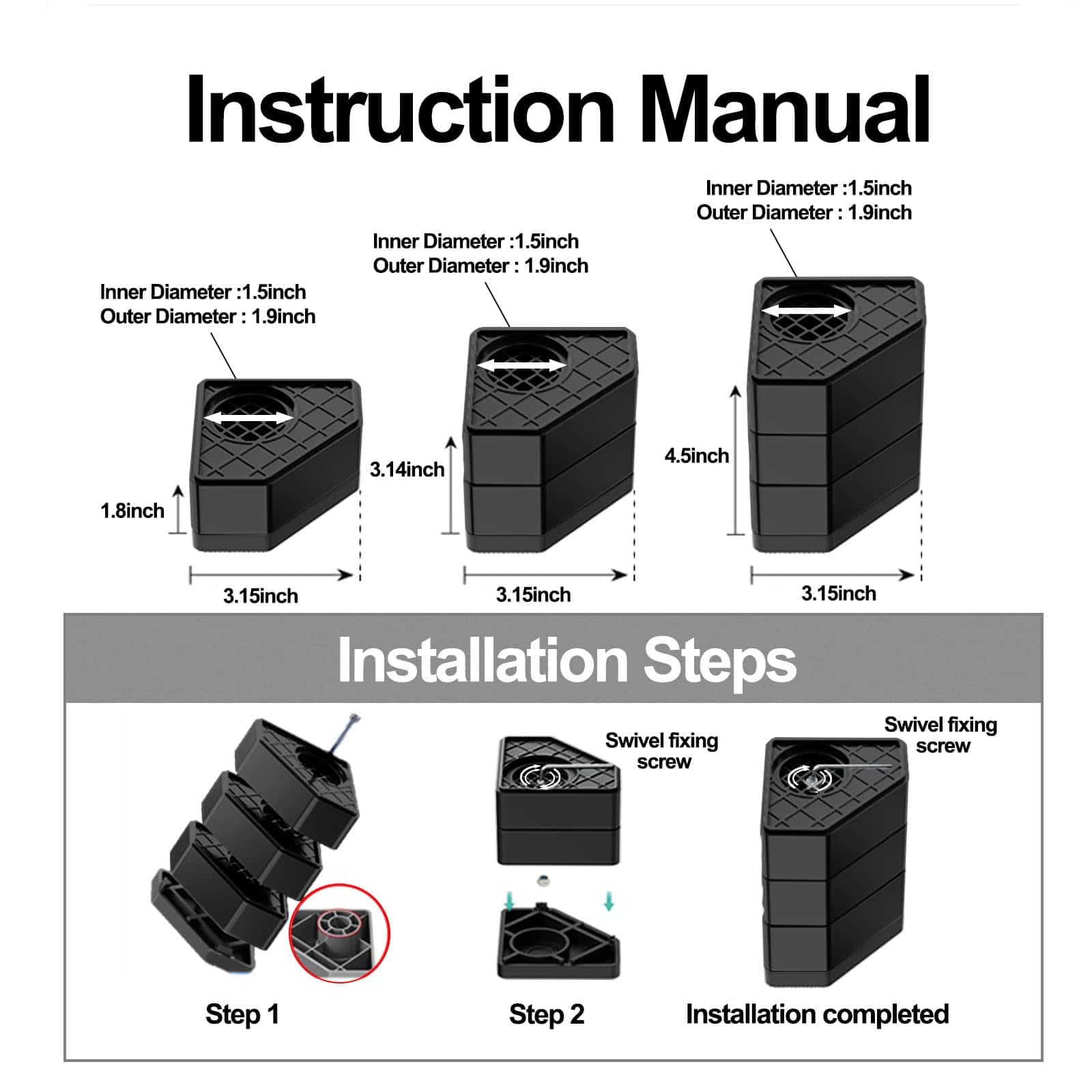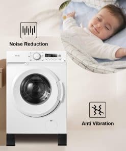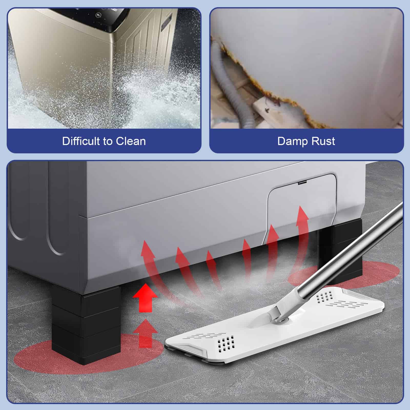 1. Almohadillas Antivibración para Lavadora: Las almohadillas antivibración para lavadora de CUISIBOT están diseñadas para elevar su lavadora hasta aproximadamente 4.5 pulgadas, y absorber el impacto, ruido, detener el movimiento tembloroso al mismo tiempo. Resuelve el problema del difícil drenaje y limpieza.
