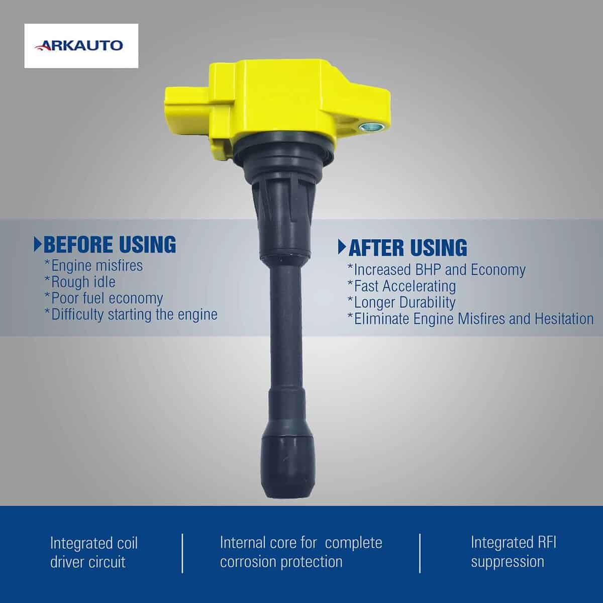 Las bobinas de encendido ARKAUTO están fabricadas con cobre de alta calidad y son diseñadas específicamente para aplicaciones particulares, siendo probadas en carretera para garantizar un rendimiento óptimo. Estas bobinas son un reemplazo perfecto para las originales, siguiendo los estándares de OE. Este producto es compatible con una variedad de vehículos, incluyendo modelos de Infiniti y Nissan. Además, estas bobinas ayudan a reducir problemas comunes de encendido, asegurando un mejor rendimiento del motor y evitando fallos y averías innecesarias. Con una garantía limitada de 1 año, puede confiar en la calidad y fiabilidad de las bobinas de encendido ARKAUTO para mantener su vehículo funcionando de manera eficiente y confiable.