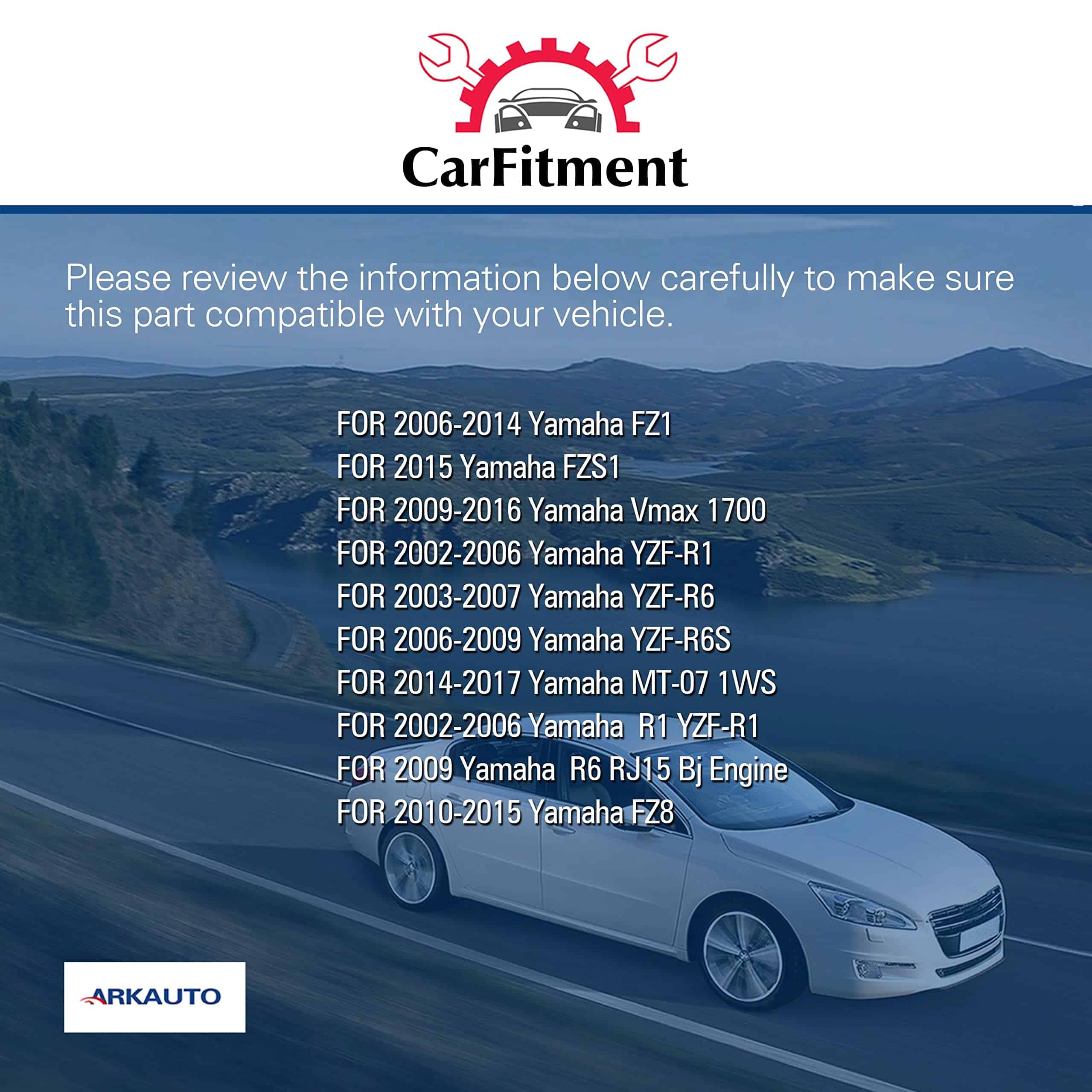 3. Compatible con Yamaha FZ1 2006-2014, Yamaha FZS1 2015, Yamaha Vmax 1700 2009-2016, Yamaha YZF-R1 2002-2006, Yamaha YZF-R6 2003-2007, Yamaha YZF-R6S 2006-2009, Yamaha MT-07 1WS 2014-2017, Yamaha R1 YZF-R1 2002-2006, Yamaha R6 RJ15 Bj Engine 2009, Yamaha FZ8 2010-2015.