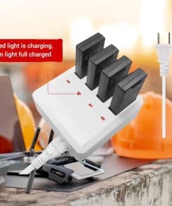 3. Datos del cargador Entrada 120V – 240V 50 / 60zH, Salida: DC4.35V 4A, Tiempo de carga para 4 baterías completas: 90 minutos.