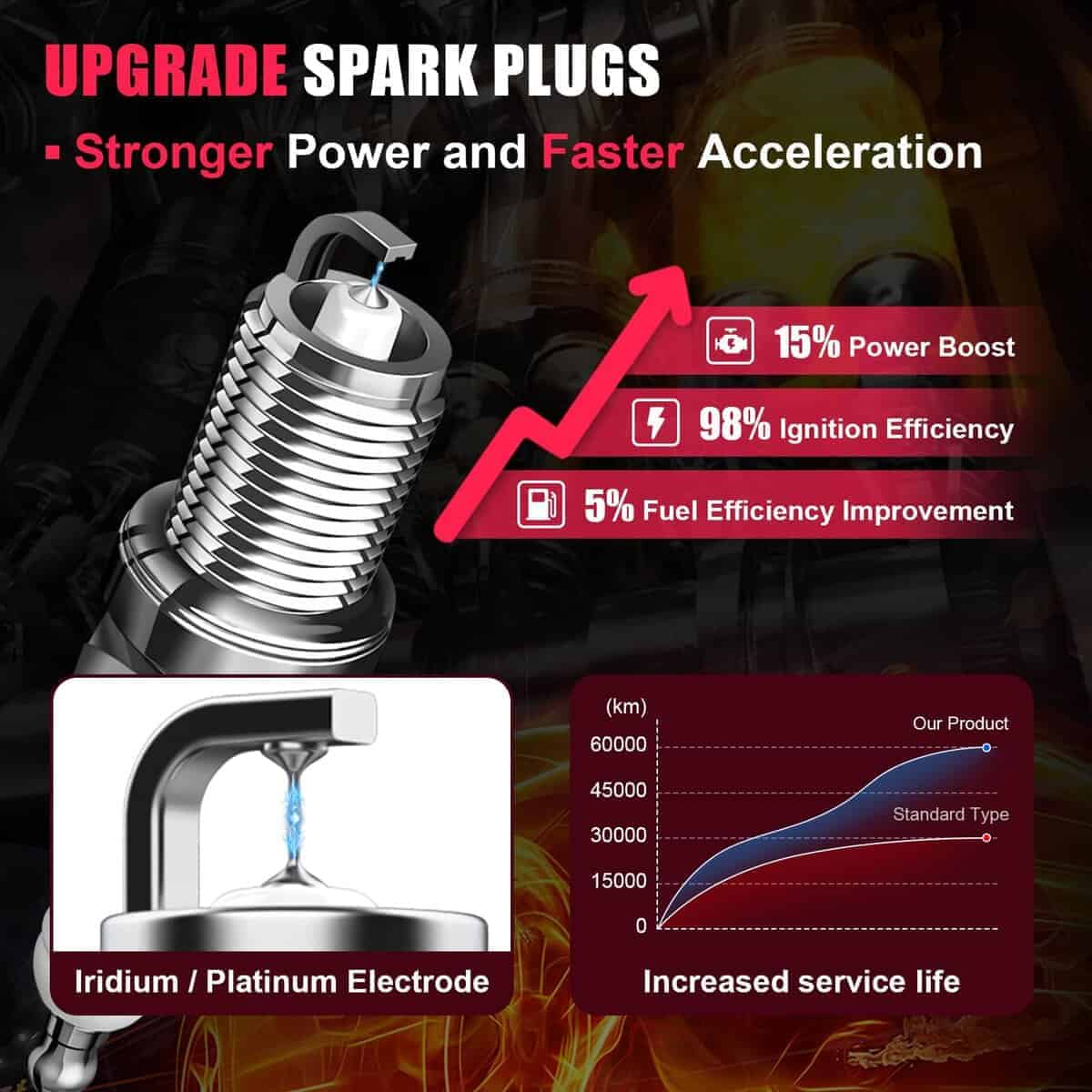 3. Bujía: Actualice el sistema de encendido de su motor con nuestra excepcional bujía de doble iridio. Con una vida útil significativamente más larga de hasta 100,000 kilómetros, puede disfrutar de una chispa constante y estable que mantiene su motor funcionando en todos los cilindros. Reemplaza a 9723.