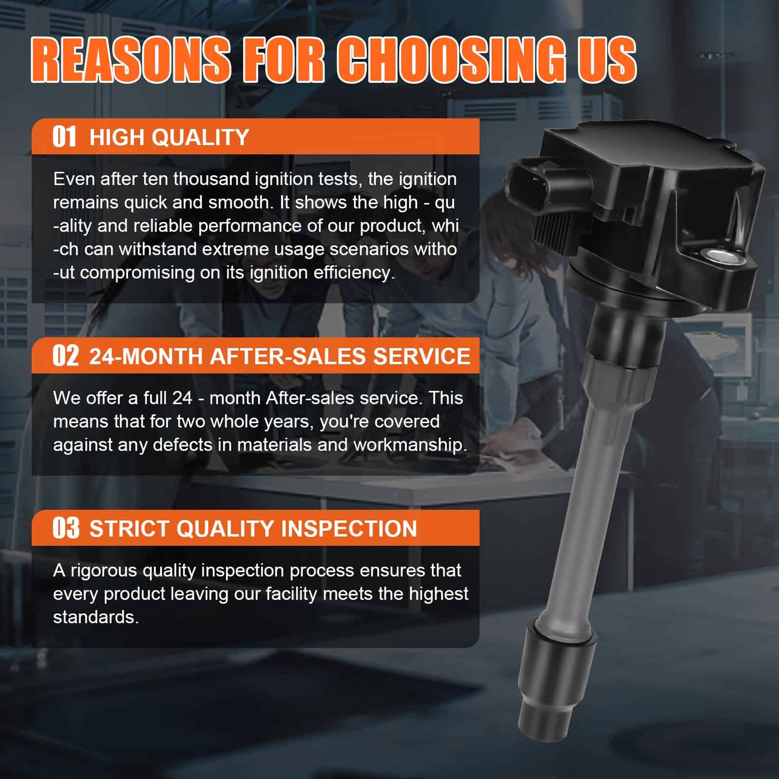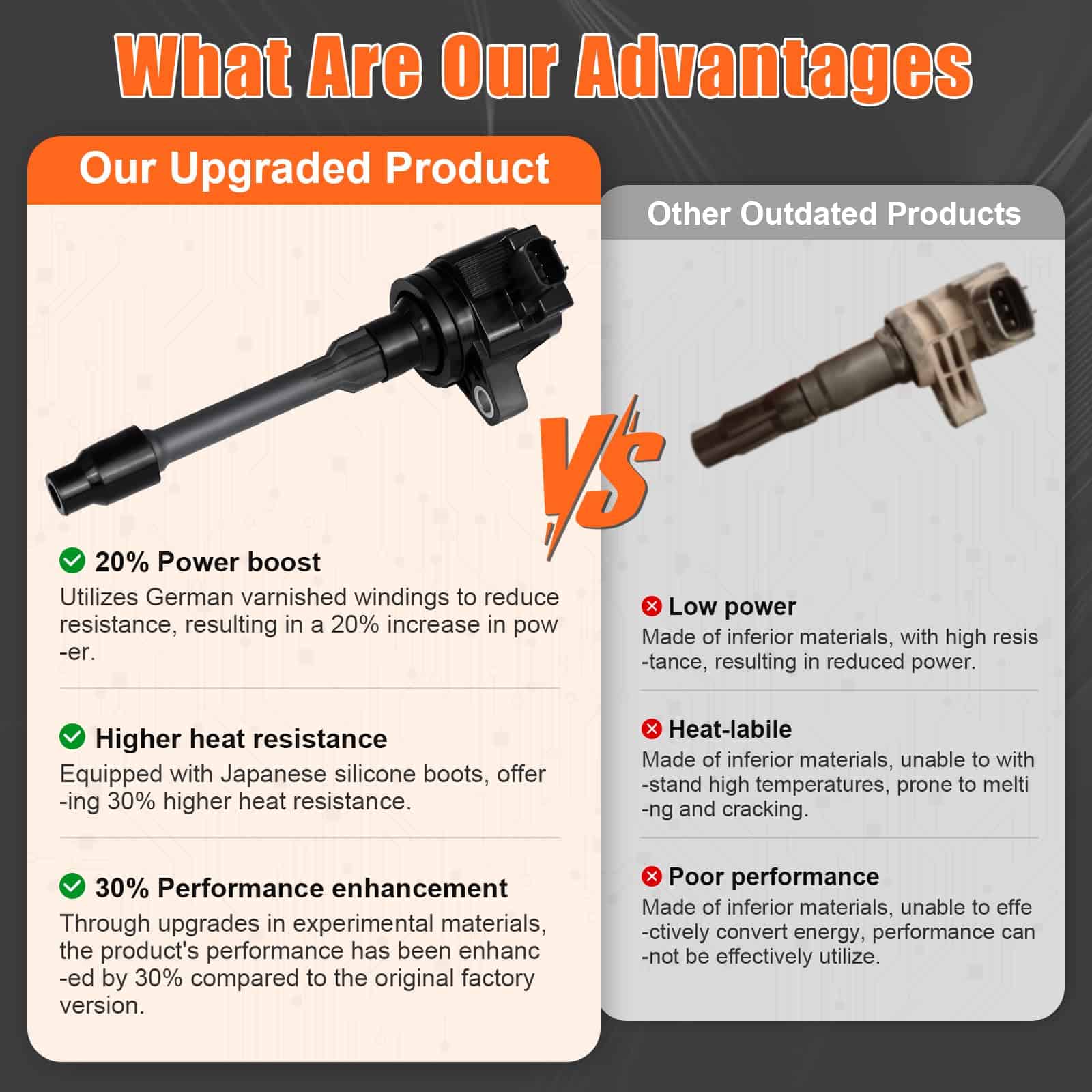 4. Durabilidad de Grado Militar: Nuestra bobina de encendido se beneficia de un sistema de protección de tres capas. Cuenta con encapsulación de epoxi con una calificación impermeable IP67, un núcleo de acero silicio que ofrece una mejora del 40% en la resistencia a las vibraciones, y una carcasa de aleación de cobre-níquel que proporciona una eficiencia de disipación de calor un 35% mejor. Como resultado, nuestra bobina de encendido es más duradera que la original de fábrica.