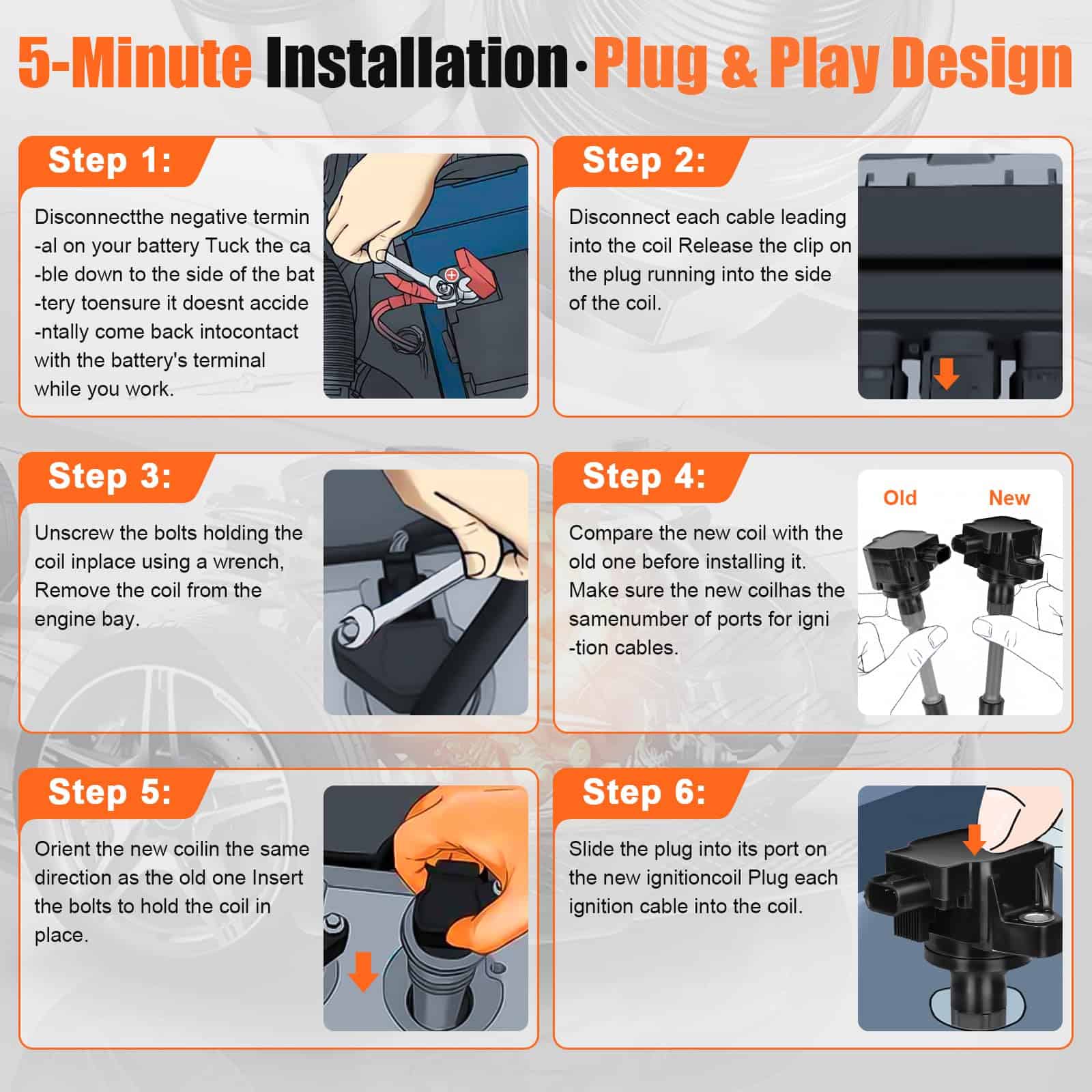 3. Solución Completa de Sistema de Encendido: Solucione problemas comunes como ralentí áspero (disminución del 72% en fluctuaciones de velocidad), luz de advertencia del motor (códigos de falla OBDII P0300 – P0304), aceleración deficiente (mejora de 1.2 segundos de 0 a 60 mph) y desperdicio de combustible (Aproximadamente una reducción del 10% en pruebas reales).