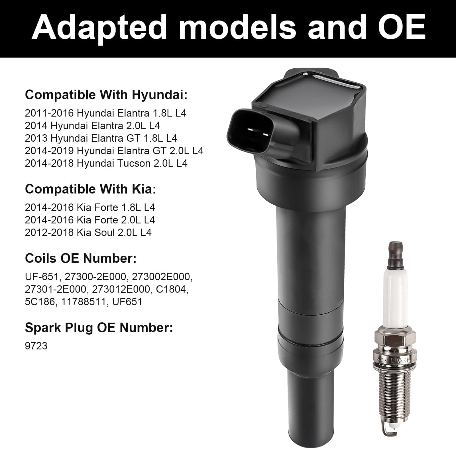 4pcs Bobinas de Encendido y Bujía Compatible con Hyundai