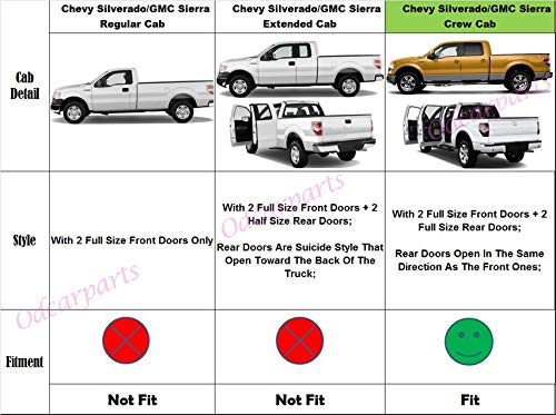 Chevy Silverado/GMC Sierra 1500/2500/3500/1500 HD/2500 HD Crew cab del año 2001-2006 solamente (No se ajustan a otros modelos de cabina)