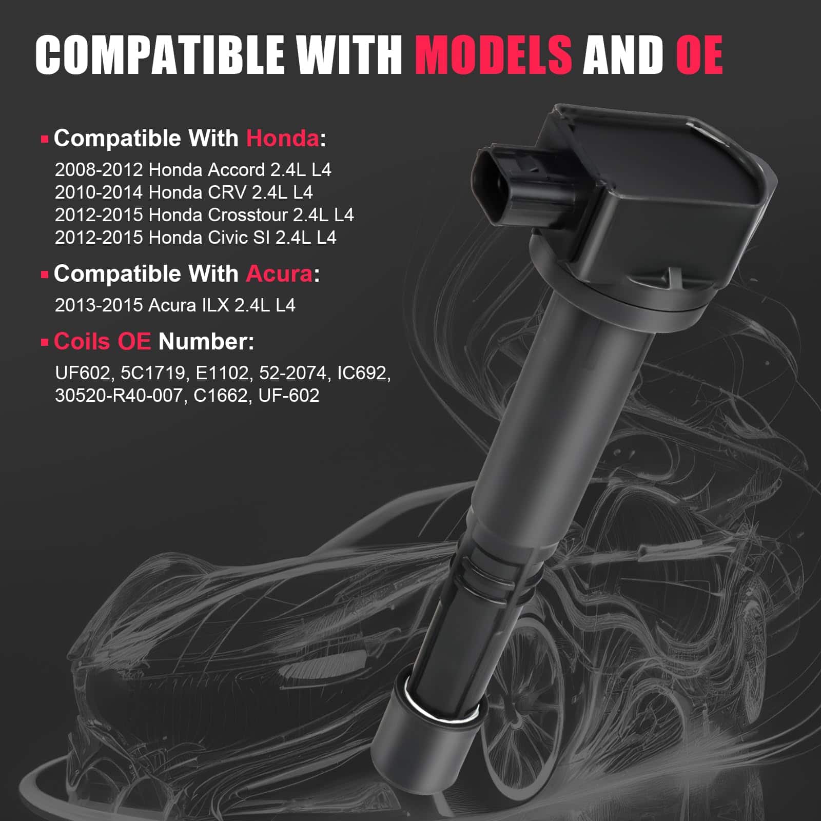 4pcs Ignition Coil Compatible with Honda Accord CRV Civic