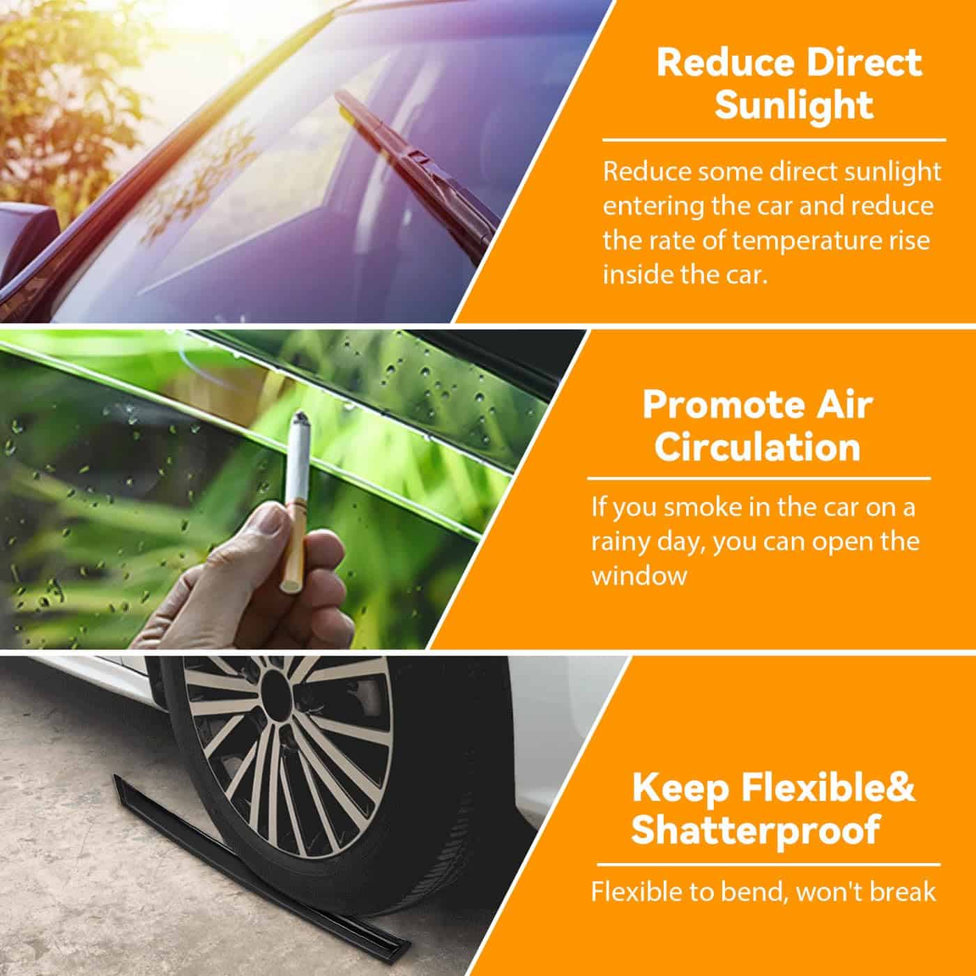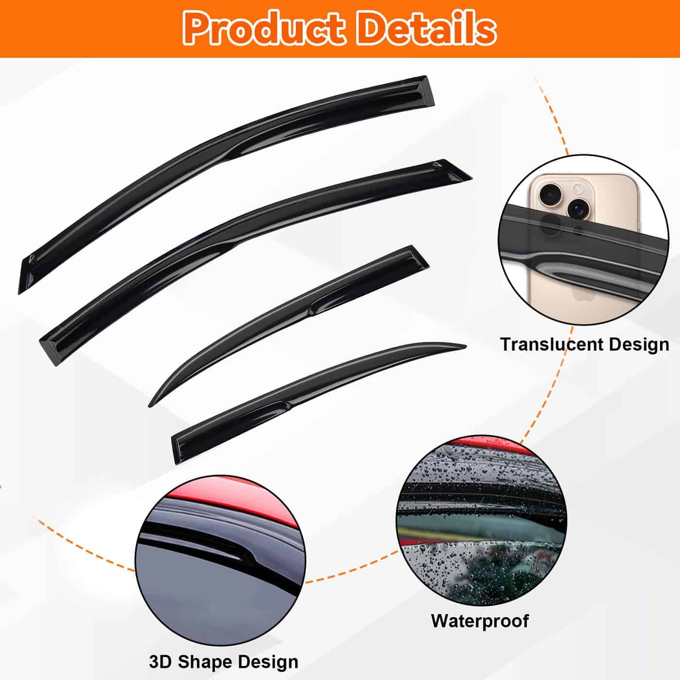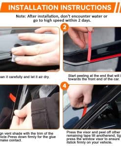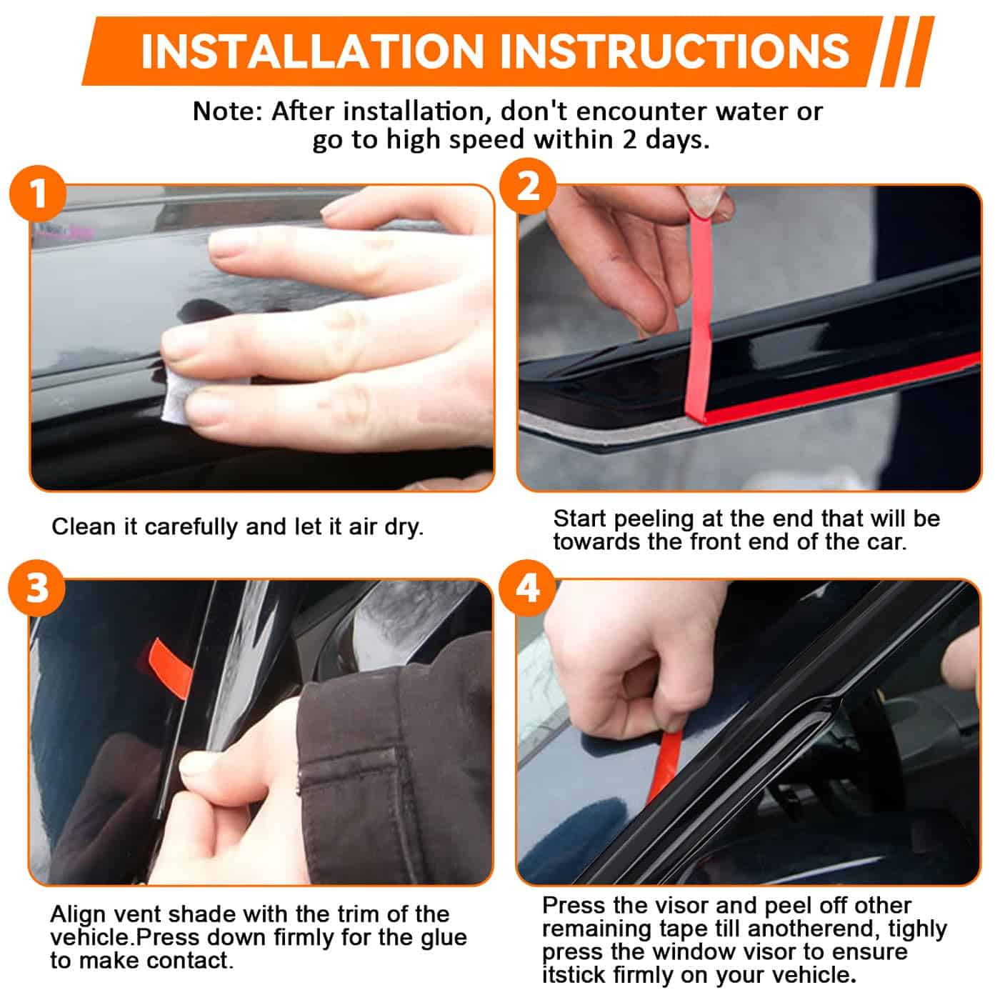 2. Paquete incluye: 4pcs Viseras de Ventana Estilo 3D Wavy Frontal + Trasera (Las cintas de doble cara están preinstaladas).
