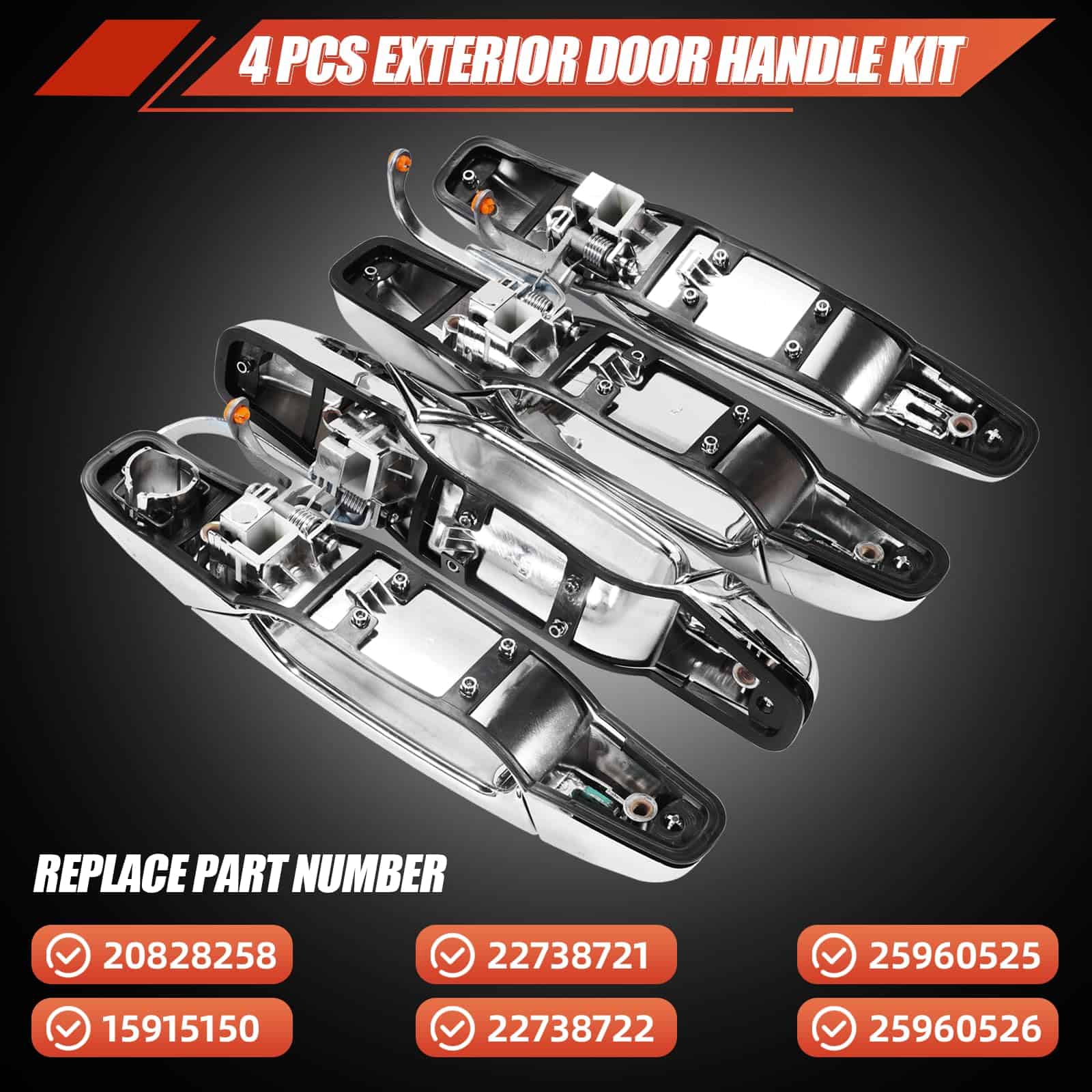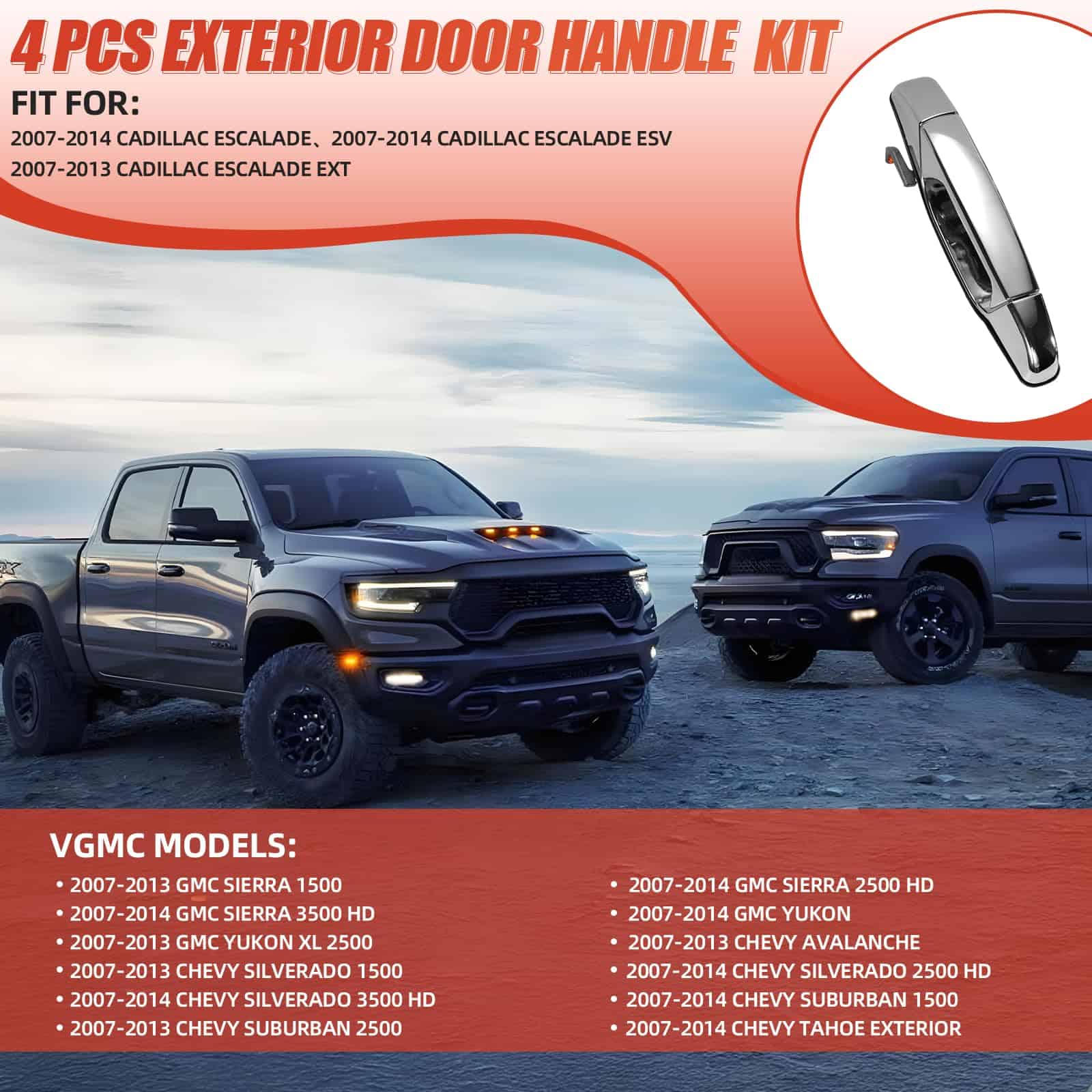 1. Ajuste perfecto: Manijas de puerta compatibles con 2007-2013 Chevy Silverado (1500, 2500HD, 3500HD) Suburban, Tahoe, Avalanche, 2007-2013 GMC Sierra/Yukon/Yukon XL, 2007-2013 Cadillac Escalade/ESV/EXT. Se adapta a una variedad de modelos GM.
