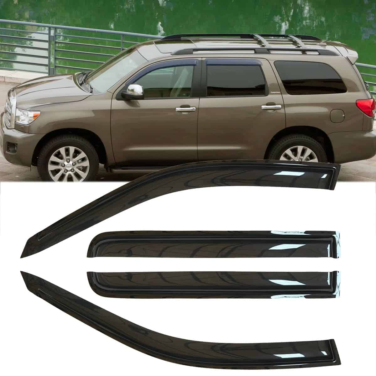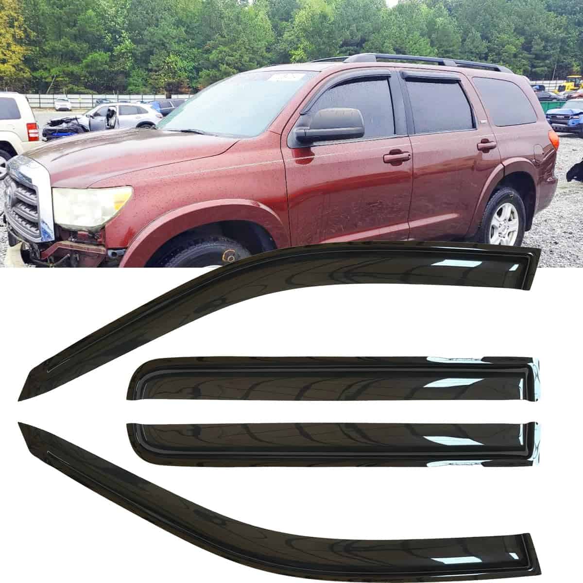 1. Compatibilidad: Deflectores de viento para ventanas del lado del pasajero y del conductor especialmente diseñados para Toyota Sequoia 2008-2022.