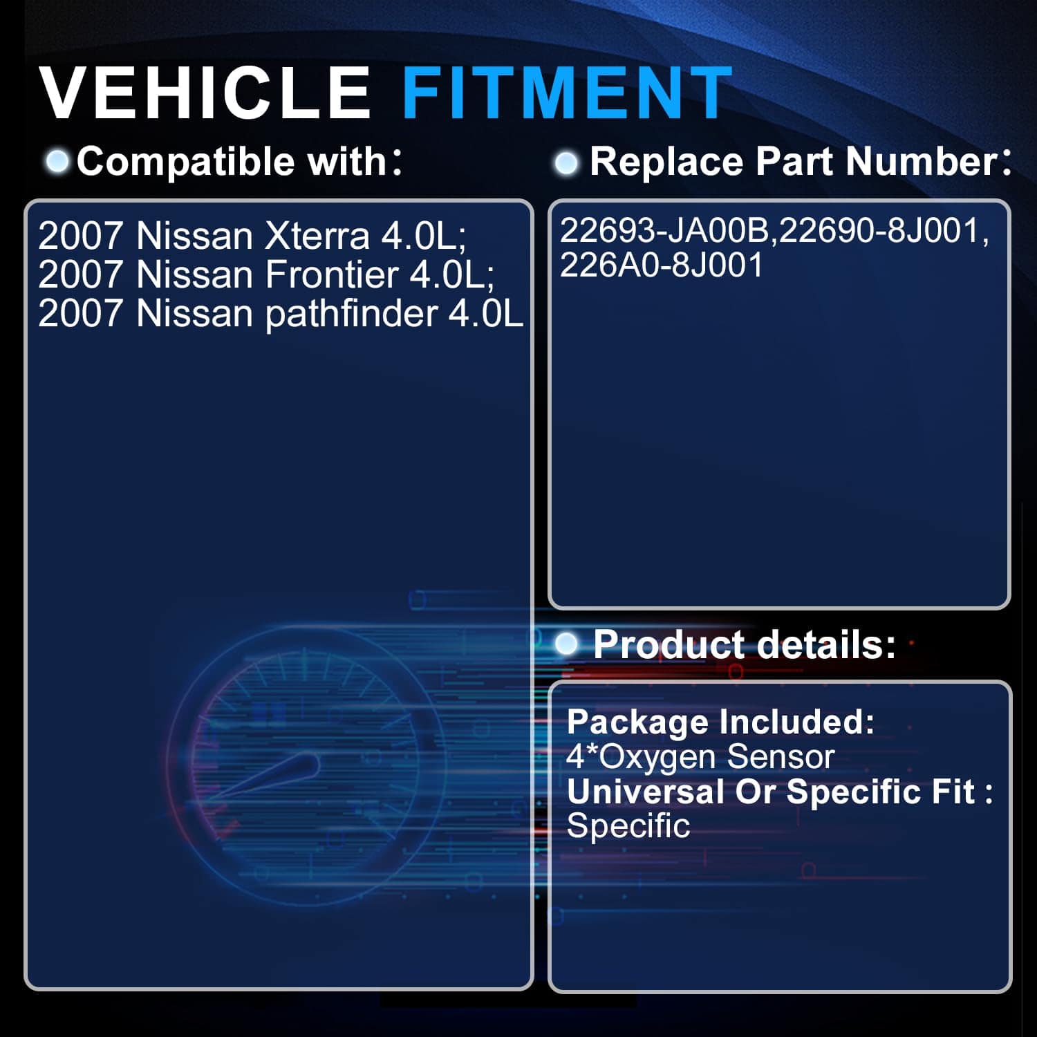 4X Sensor de Oxígeno Compatible con 2007 Nissan Xterra