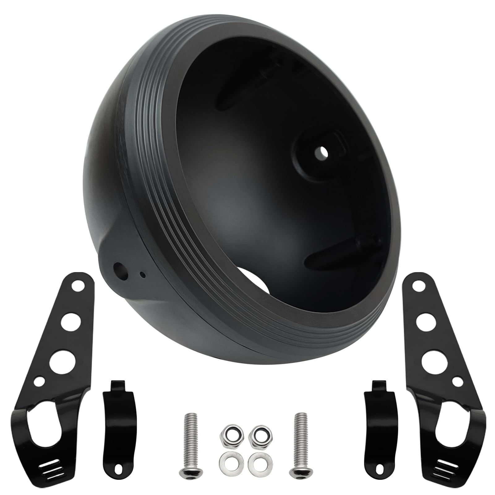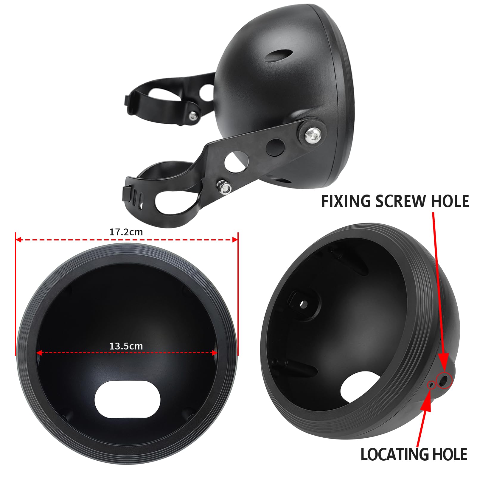 Motorcycle Headlight housing bucket with fork tube bracket fit 5.75 inch aftermarket led headlight. 5.75inch Housing Bucket made of High Quality aluminum alloy with a Satin Black finished. Installation is easy, you can very quick set up to mount the headlight to the housing bracket. There is excess space in the housing to stuff loose wired. Solid build, quality material, The 5.75 motorcycle light was held firmly in the bucket. Motorcycle headlight housing and fork tube bracket installation instructions please see the installation videos in the product descriptions.