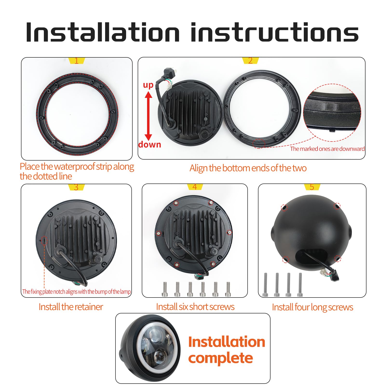 4. Construcción sólida, material de calidad, el faro de motocicleta de 5.75 pulgadas se mantuvo firmemente en la cubierta.