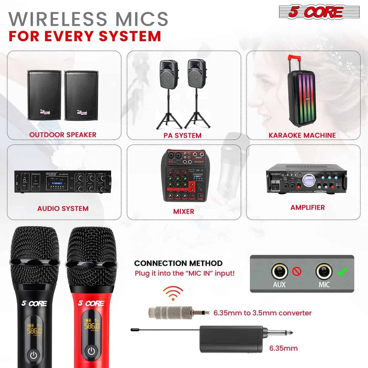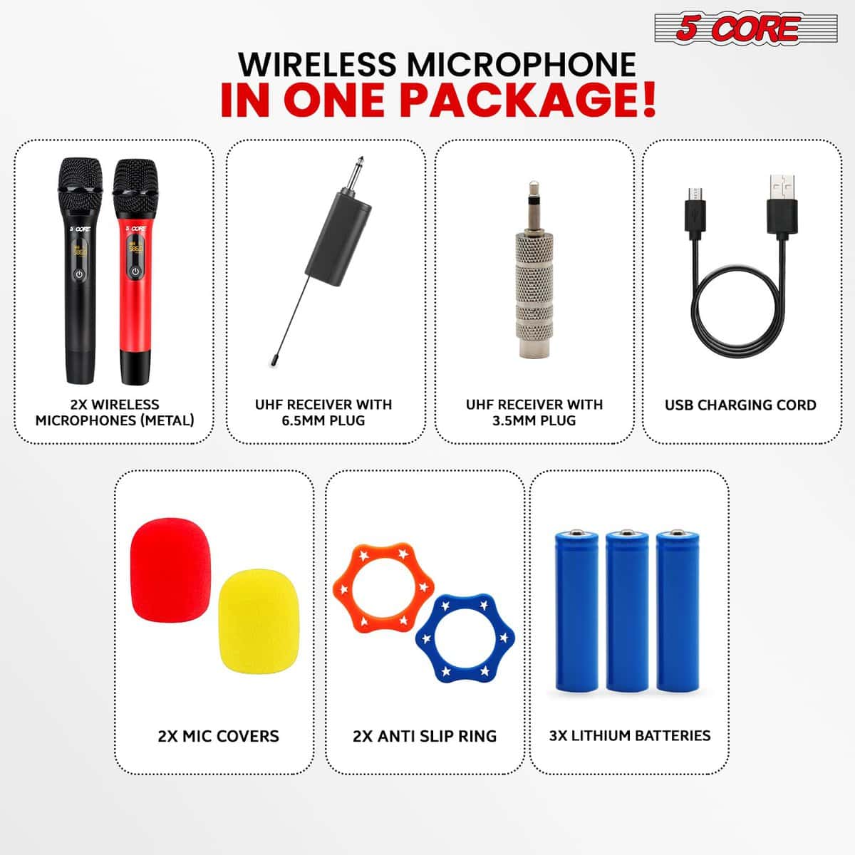 5 CORE Microfonos Inalambricos UHF Karaoke 210 ft Alcance 2