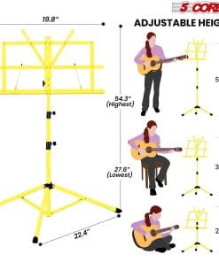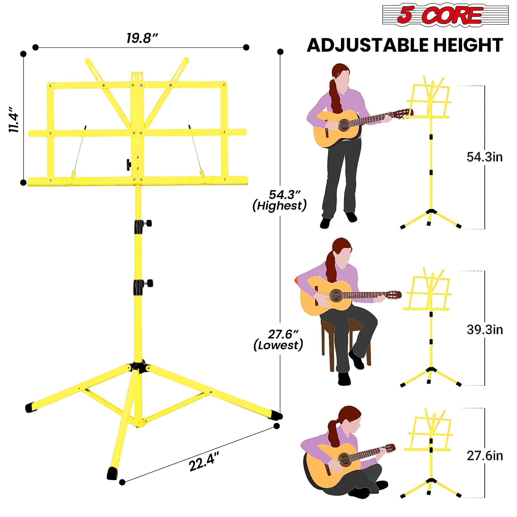 5 Core Music Stand, 2 en 1 Soporte Plegable Ajustable para