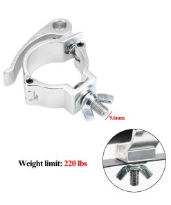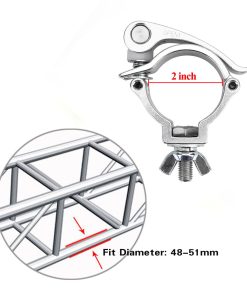 b Características: /b br br – Certificado TUV Rheinland br – Límite de peso: 220 lbs br – Abrazadera de 360 grados que envuelve los tubos de truss br – Material de aleación de aluminio br – Seguridad y estabilidad br br b Especificaciones: /b br br – Material: Aleación de Aluminio 6061 br – Ajuste de Diámetro de Tubo: 48-51mm para truss F34 br – Tornillo Roscado: 9.6mm br – Ancho: 30mm br – Capacidad de Carga: 1 – 100kg / 1 – 220lb br – Tamaño: 11 9 3cm / 4.3 3.5 1.1 pulgadas br – Peso Bruto: 186g br br b Notas: /b br br – Realice una prueba de capacidad de carga máxima antes de usar br br b Paquete incluido: /b br br 5 x Abrazadera de Luz de Escenario br br