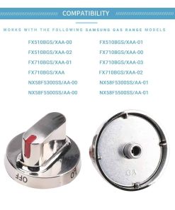2. MODELOS COMPATIBLES: Compatible con perilla de estufa / horno / gas / rango Samsung, compatible con FX510BGS / XAA-00, FX510BGS / XAA-01, FX510BGS / XAA-02, FX710BGS / XAA-00, FX710BGS / XAA-01, FX710BGS / XAA-02, FX710BGS / XAA-03, FX710BGS / XAC-00, NX58F5300SS/AA-00, NX58F5300SS/AA-0000, NX58F5300SS/AA-0001, NX58F5300SS/AA-01, NX58F5500SS/AA-00, NX58F5500SS/AA-01.