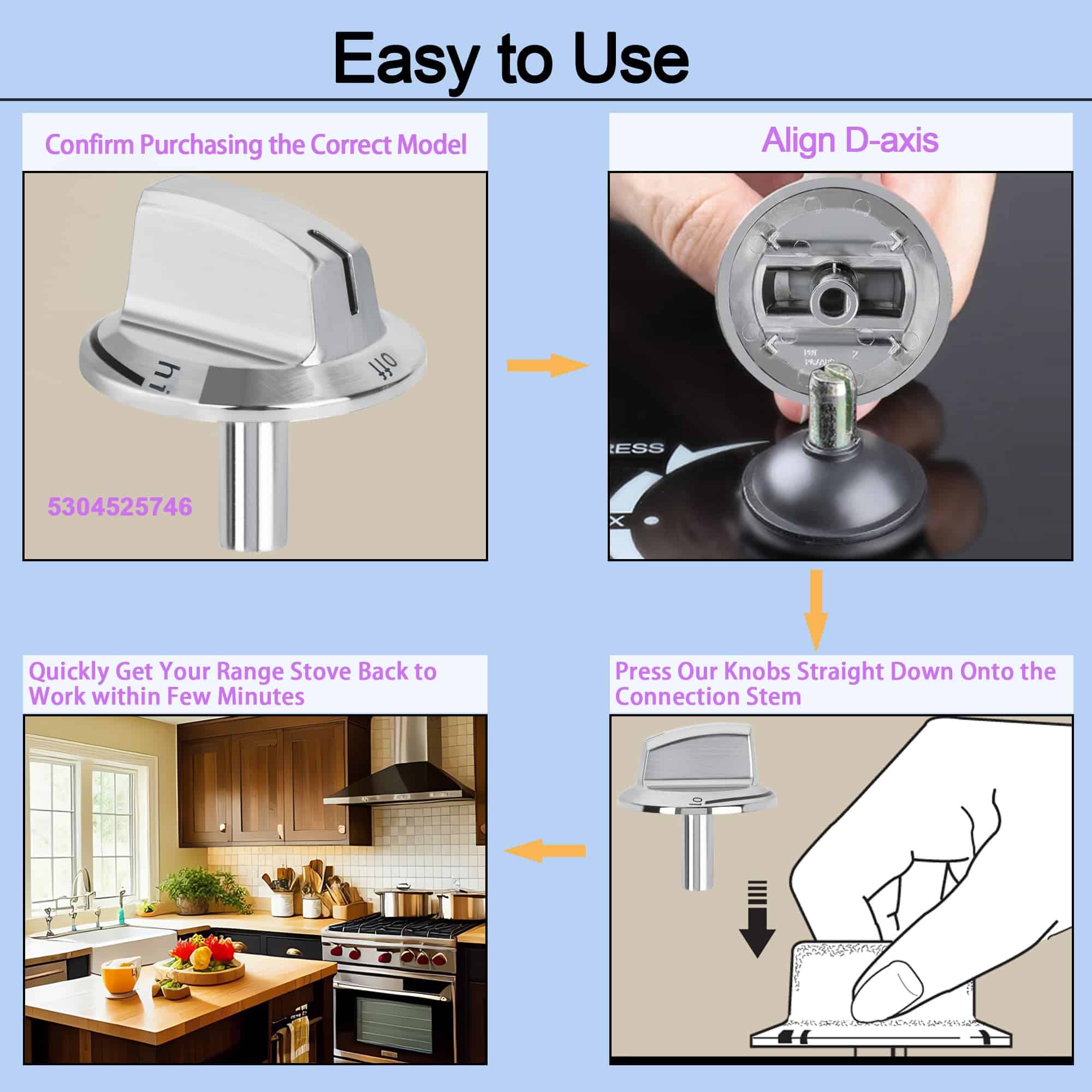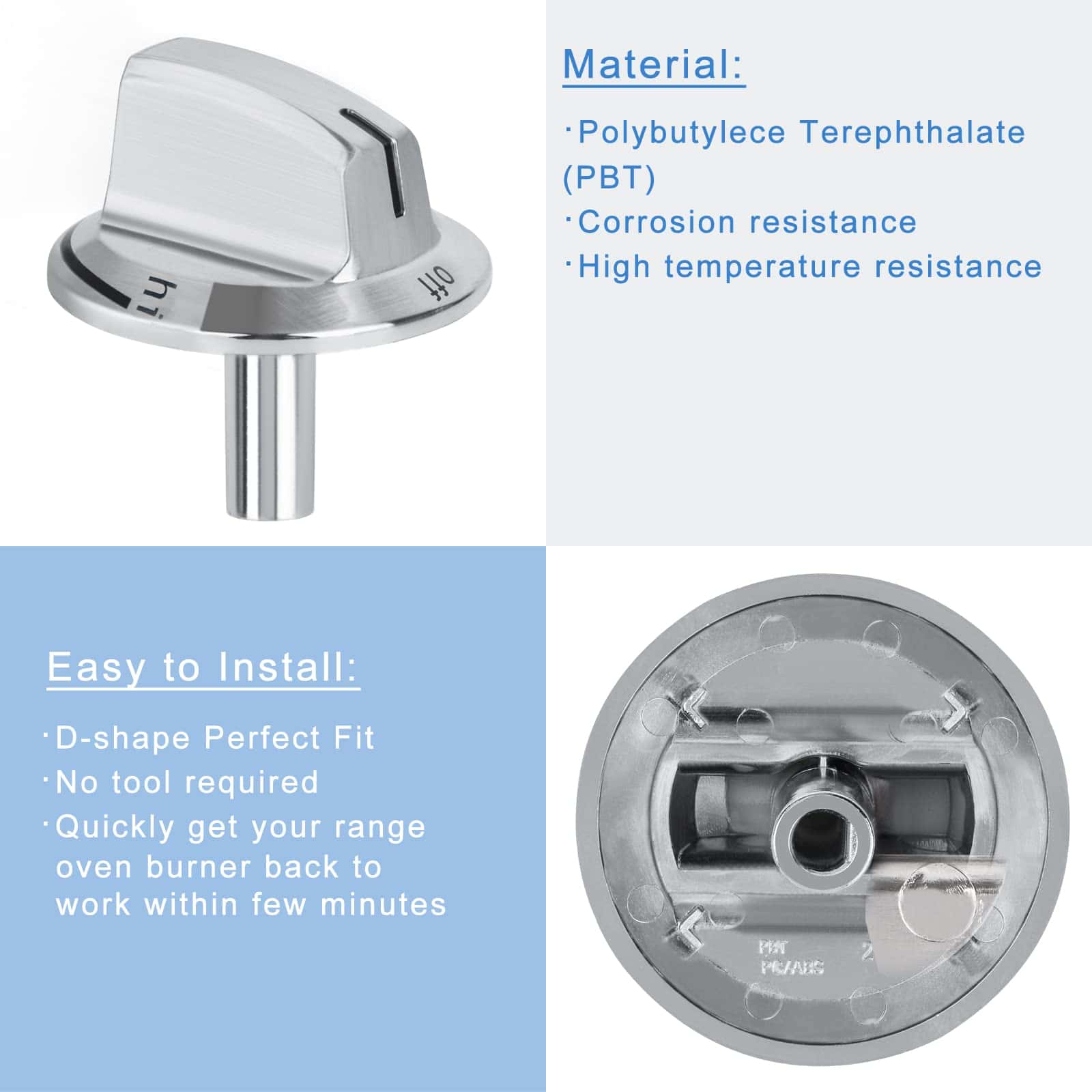 4. Fácil instalación No se requieren herramientas: fácil de instalar las perillas USTED MISMO y hacer que su estufa de rango vuelva a funcionar en pocos minutos. Por cualquier motivo que no esté 100% satisfecho, contáctenos. Nuestro equipo de servicio profesional está en línea las 24 horas para usted.