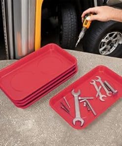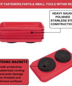 Mantenga sus piezas pequeñas organizadas y fácilmente accesibles con nuestra Bandeja de Piezas Magnética Roja Rectangular. No deje que los pernos o tuercas pequeños se pierdan en su área de trabajo. Nuestra bandeja magnética es la solución perfecta para mantener todo en su lugar mientras trabaja. Con imanes potentes, nuestras bandejas se adhieren a cualquier superficie metálica y mantienen las piezas seguras. Ya sea en el garaje, en casa o en su lugar de trabajo, nuestras bandejas magnéticas son una excelente adición a su juego de herramientas. Fabricadas con acero inoxidable sólido, nuestras bandejas son duraderas y pueden soportar años de uso. La base de goma suave negra evita que las bandejas se deslicen o rayen las superficies de trabajo. Con 5 piezas de bandejas magnéticas en cada set, podrá mantener organizadas piezas de diferentes tamaños. Ya sea que necesite una bandeja para tornillos, tuercas, pernos u otros componentes pequeños, nuestras bandejas magnéticas son la solución ideal para mantener todo en su lugar y al alcance.