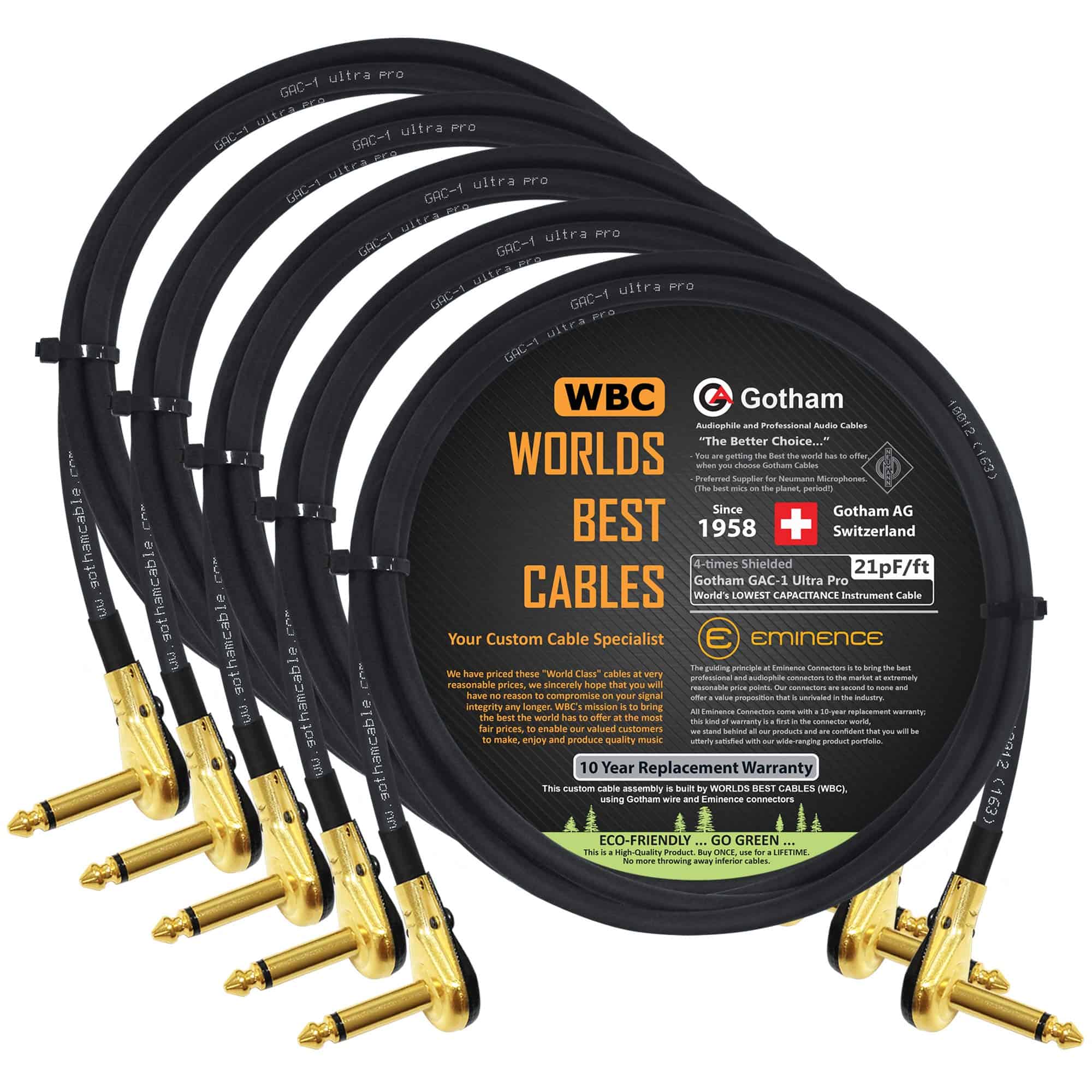5 Unidades – 2 Pies – Gotham GAC-1 Ultra Pro – Cable de