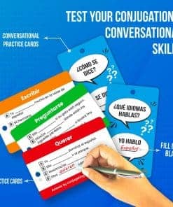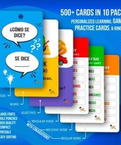 ¿Buscas aprender español de manera rápida y efectiva? Study Key te tiene cubierto con nuestras completas y versátiles tarjetas didácticas. Nuestras 500 tarjetas a doble cara abarcan todos los aspectos importantes del aprendizaje del idioma español, incluidos verbos, frases, sustantivos y adjetivos. Cada set viene con un llavero para portabilidad, lo que facilita la práctica en cualquier lugar y en cualquier momento. Nuestras tarjetas cuentan con imágenes de sustantivos/adjetivos basadas en imágenes, ejemplos de oraciones y pronunciaciones, mientras que nuestras tarjetas de verbos simplifican la comprensión de las conjugaciones. Con nuestras respuestas personalizadas en blanco, nuestros sets de frases hacen que el aprendizaje sea atractivo y divertido. Study Key está diseñado para ayudar tanto a los principiantes como a los estudiantes intermedios a dominar el idioma español. La portabilidad de nuestras tarjetas significa que puedes llevarlas contigo a cualquier lugar, lo que te permite ampliar tu aprendizaje más allá de la casa o el aula. Además de nuestros sets, también proporcionamos tarjetas de práctica que pueden ayudarte a poner a prueba tus habilidades de conjugación. Elige Study Key para una experiencia completa y efectiva de aprendizaje de español.