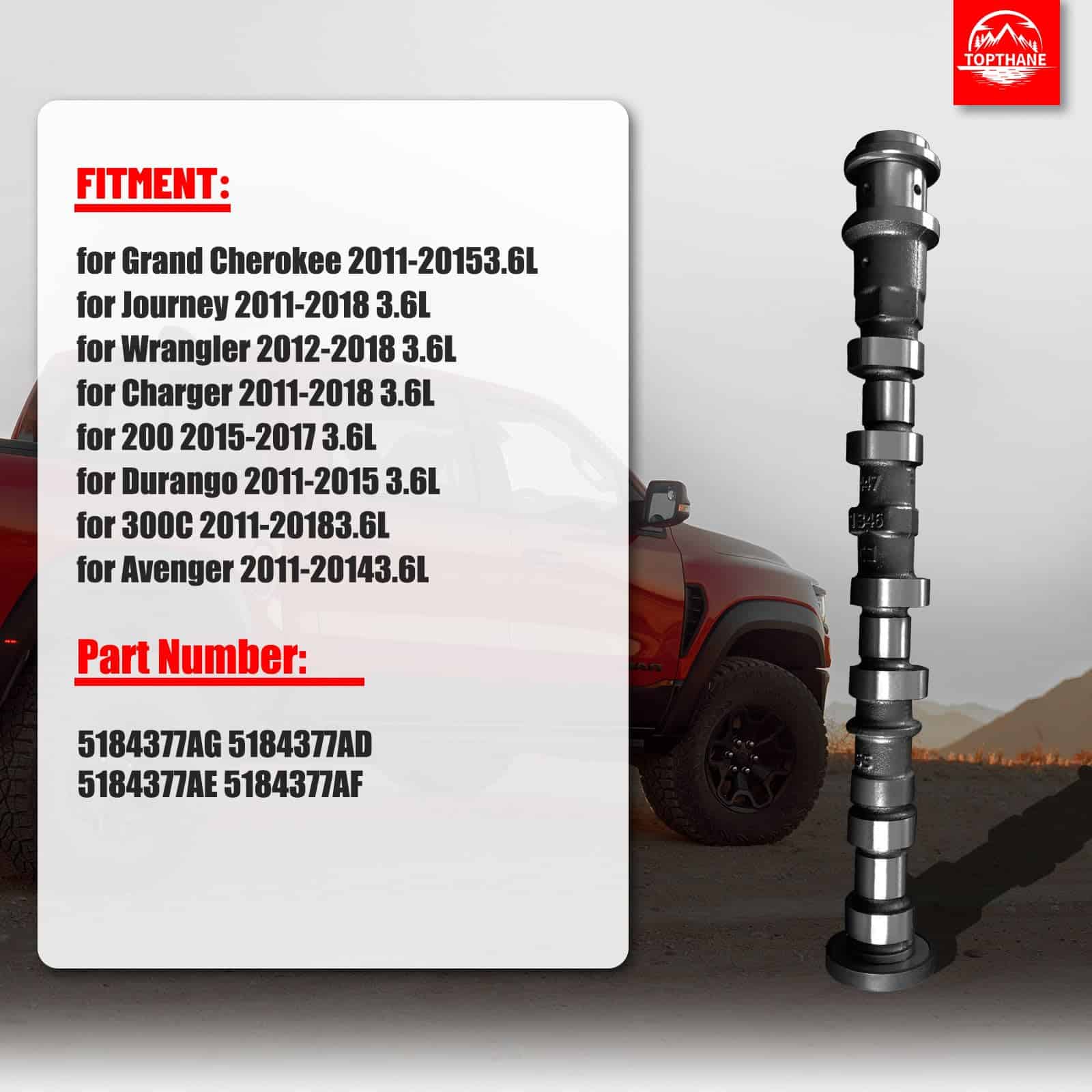 2. Compatibilidad Garantizada: Compatible con varios modelos Jeep, Dodge, Chrysler y Ram con motor V6 de 3.6L, incluidos aquellos con números de pieza OEM 05184377AH, 5184377AE, 5184377AF y 5184377AD. Asegure un ajuste perfecto e integración sin fisuras con los componentes de su motor existentes.